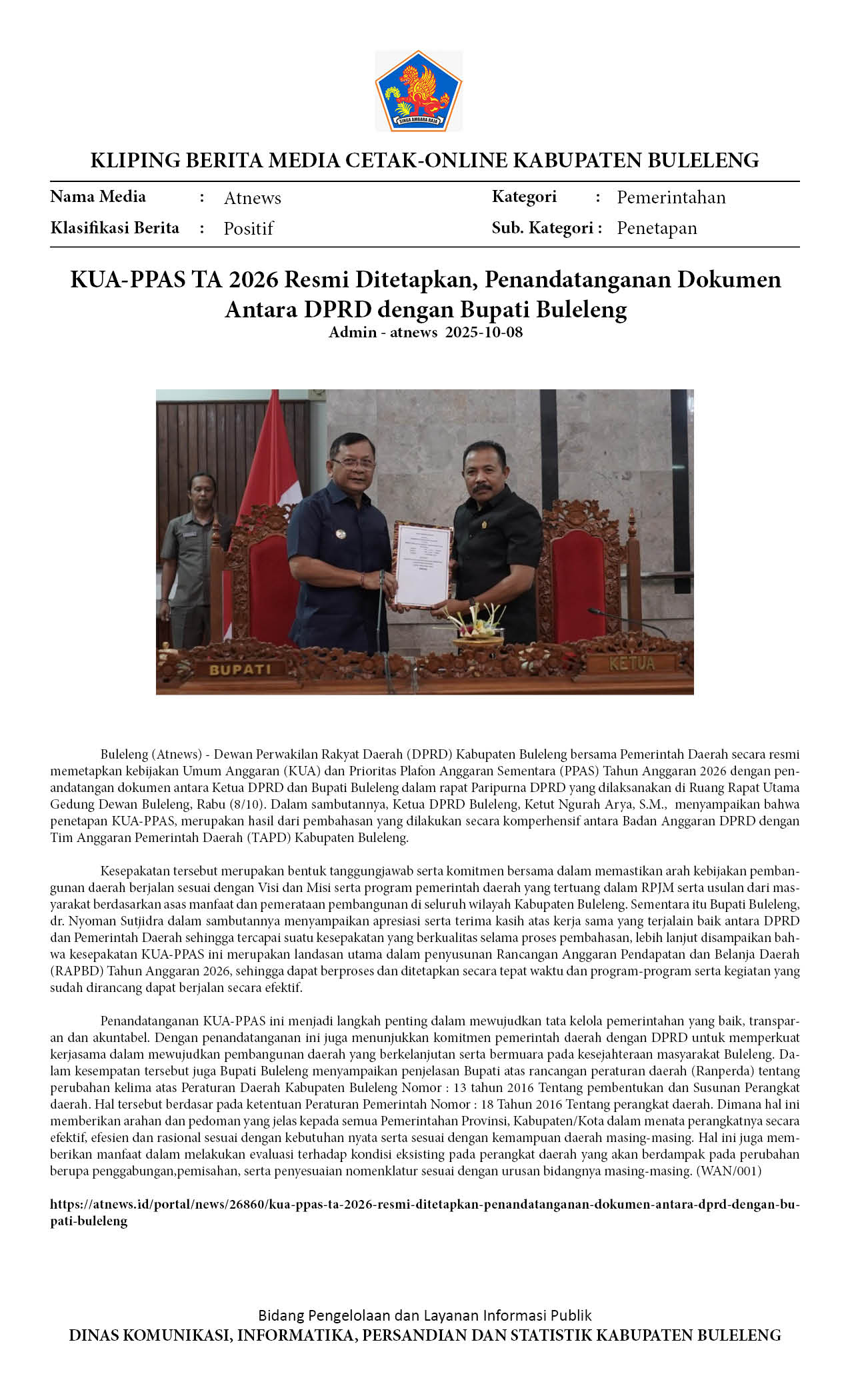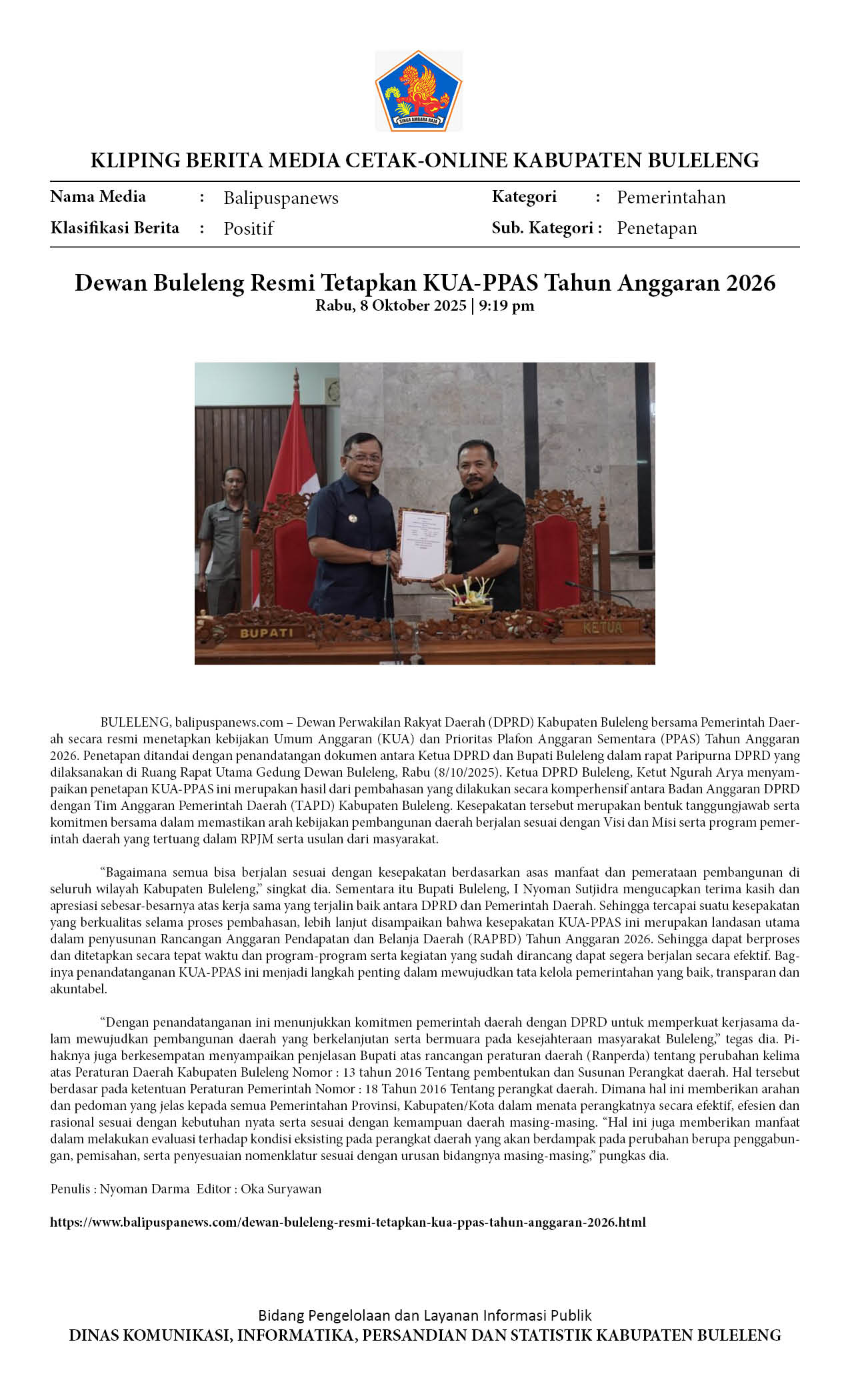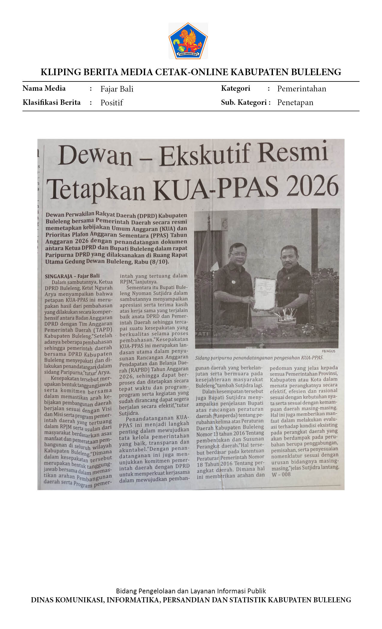 DPRD DAN PEMKAB BULELENG TETAPKAN KUA-PPAS 2026