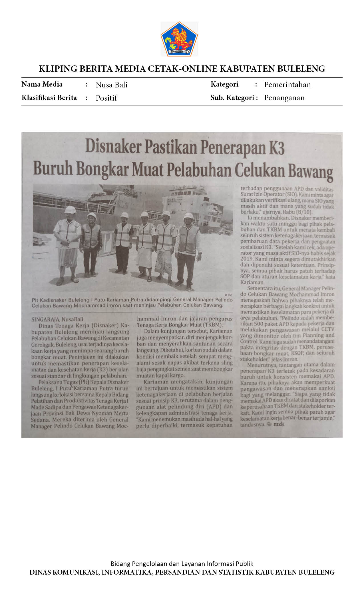 DISNAKER PASTIKAN PENERAPAN K3 BURUH BONGKAR MUAT PELABUHAN CELUKAN BAWANG