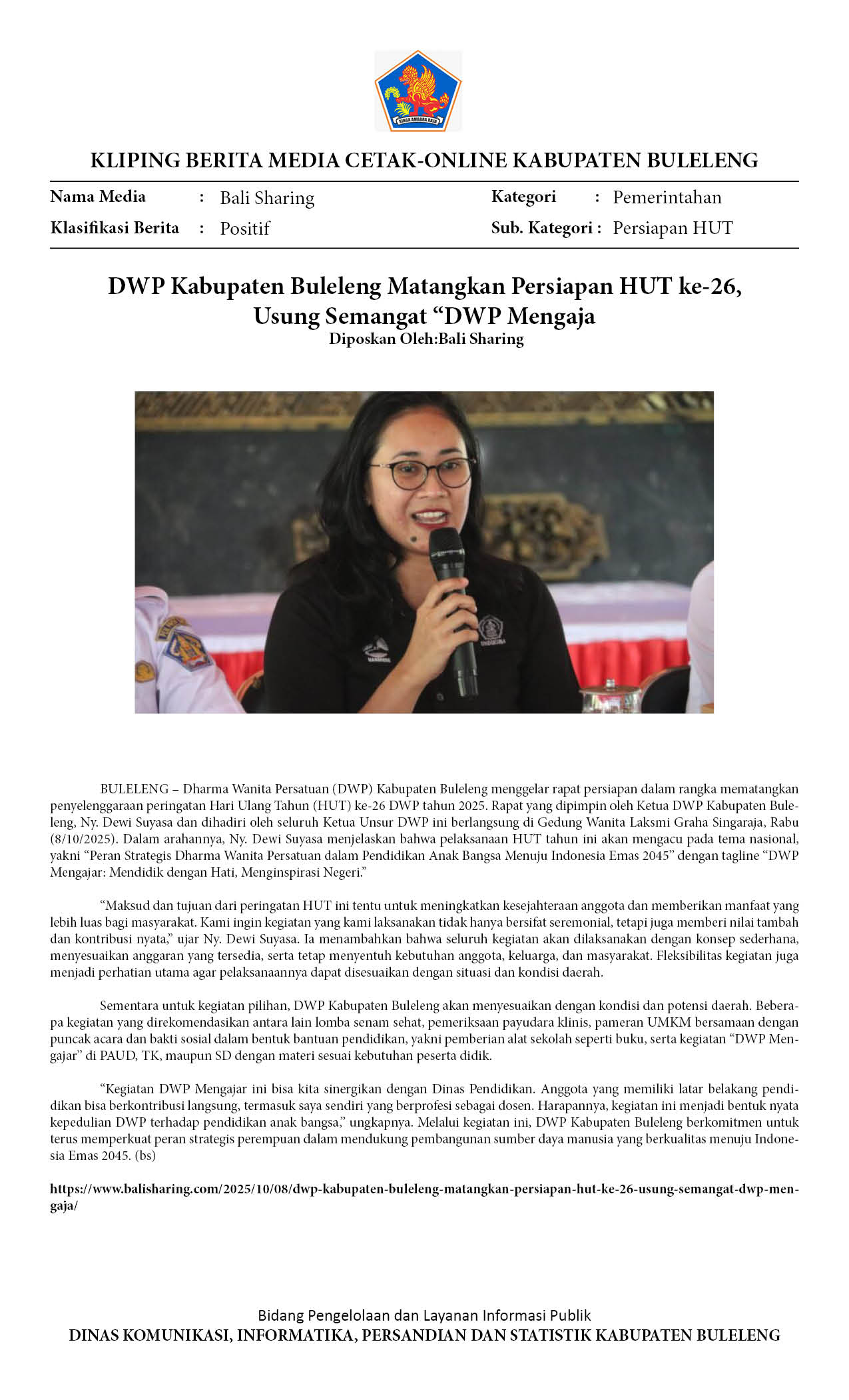 DWP KABUPATEN BULELENG MATANGKAN PERSIAPAN HUT KE-26, USUNG SEMANGAT “DWP MENGAJA