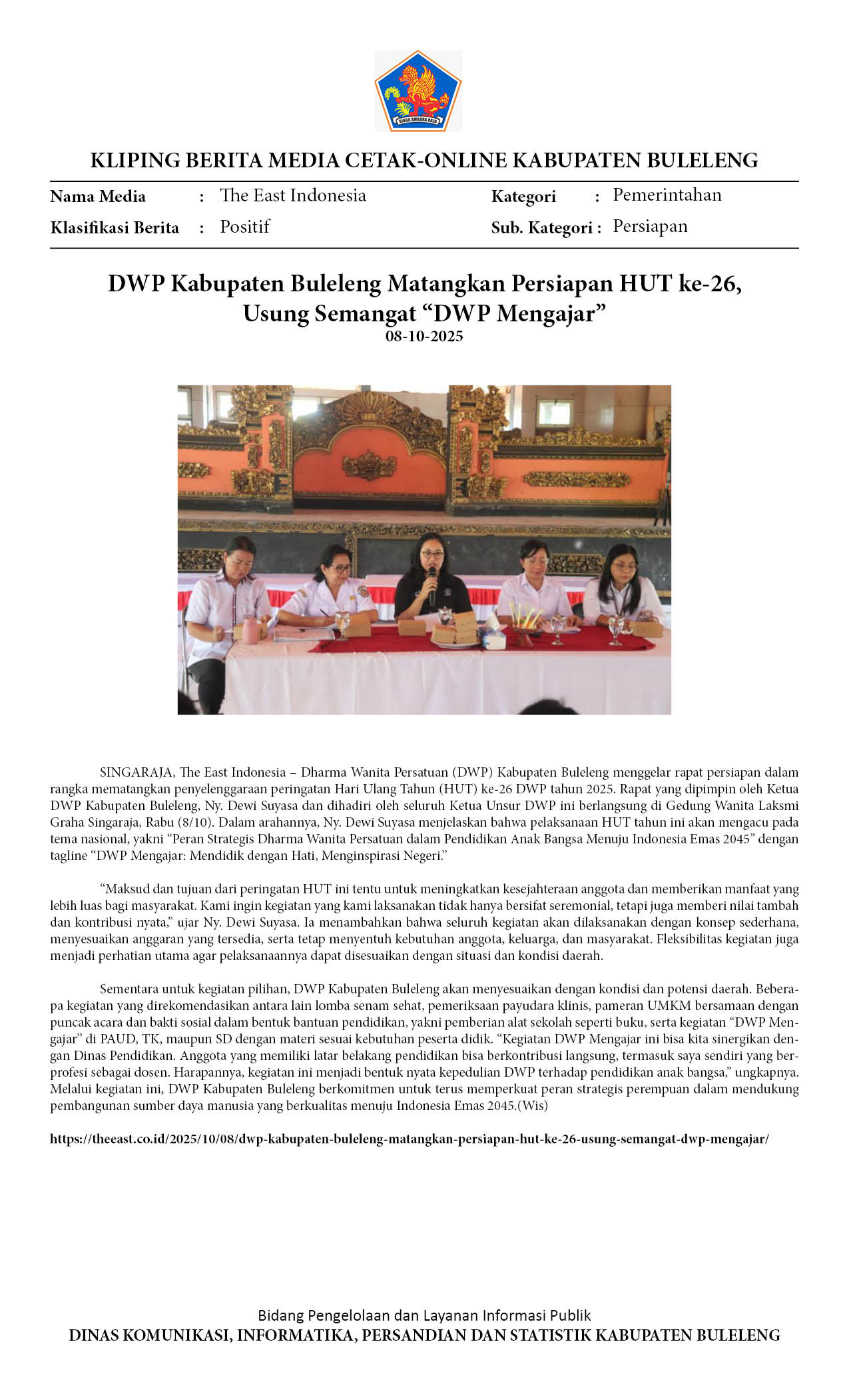 DWP KABUPATEN BULELENG MATANGKAN PERSIAPAN HUT KE-26, USUNG SEMANGAT “DWP MENGAJAR”
