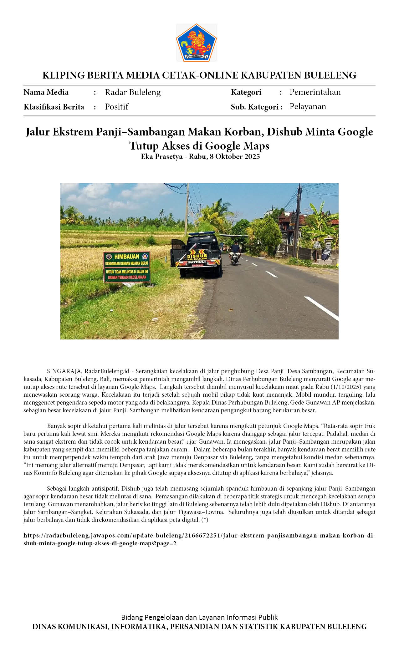 JALUR EKSTREM PANJI–SAMBANGAN MAKAN KORBAN, DISHUB MINTA GOOGLE TUTUP AKSES DI GOOGLE MAPS