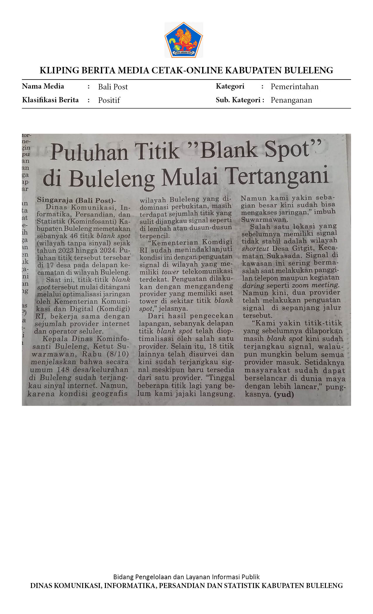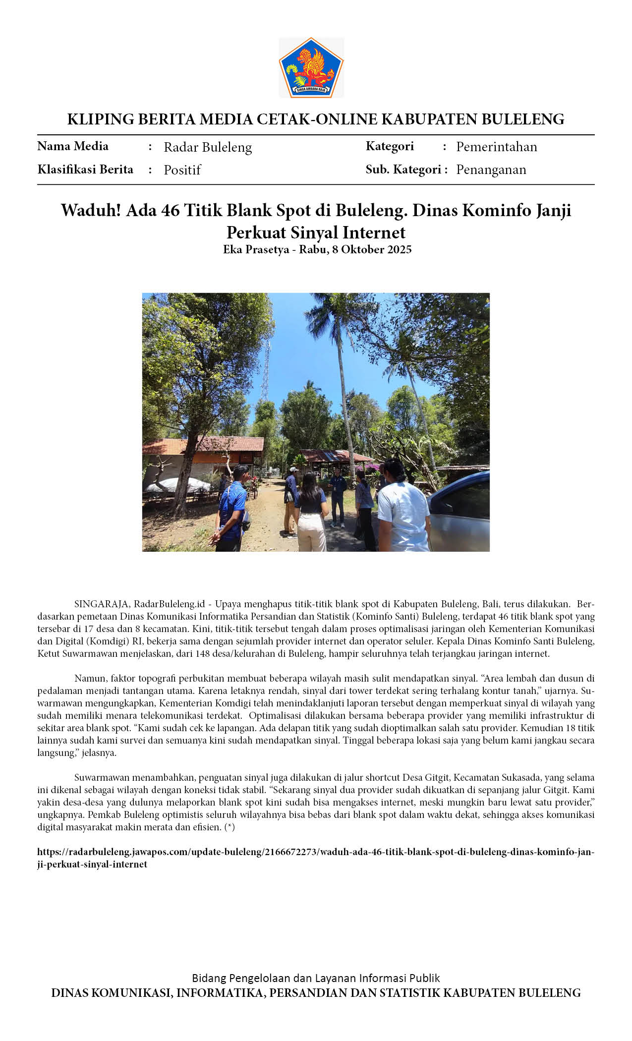 WADUH! ADA 46 TITIK BLANK SPOT DI BULELENG. DINAS KOMINFO JANJI PERKUAT SINYAL INTERNET