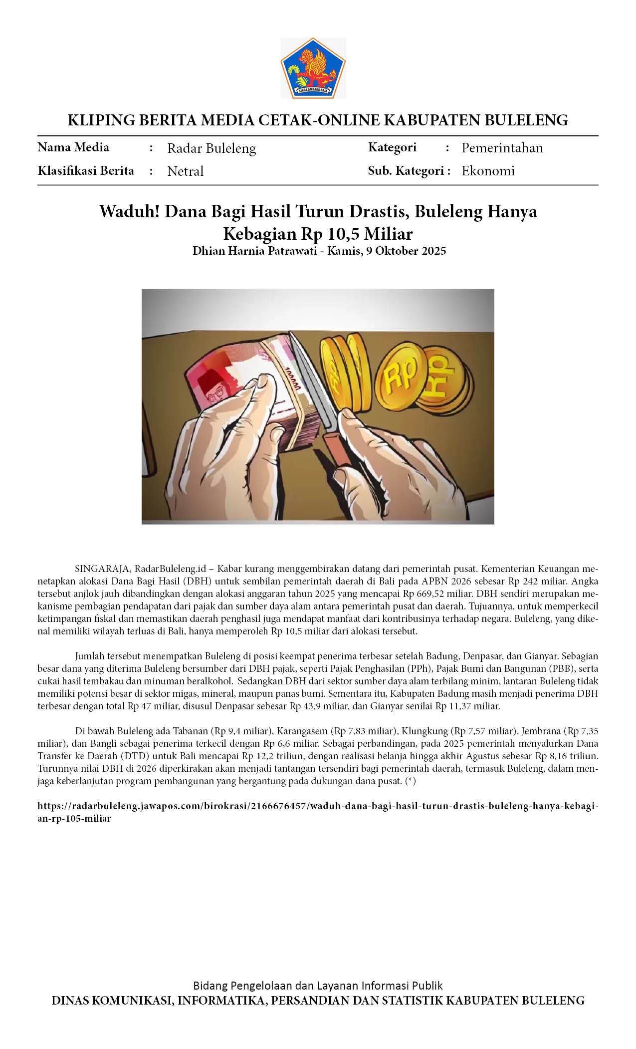 WADUH! DANA BAGI HASIL TURUN DRASTIS, BULELENG HANYA KEBAGIAN RP 10,5 MILIAR