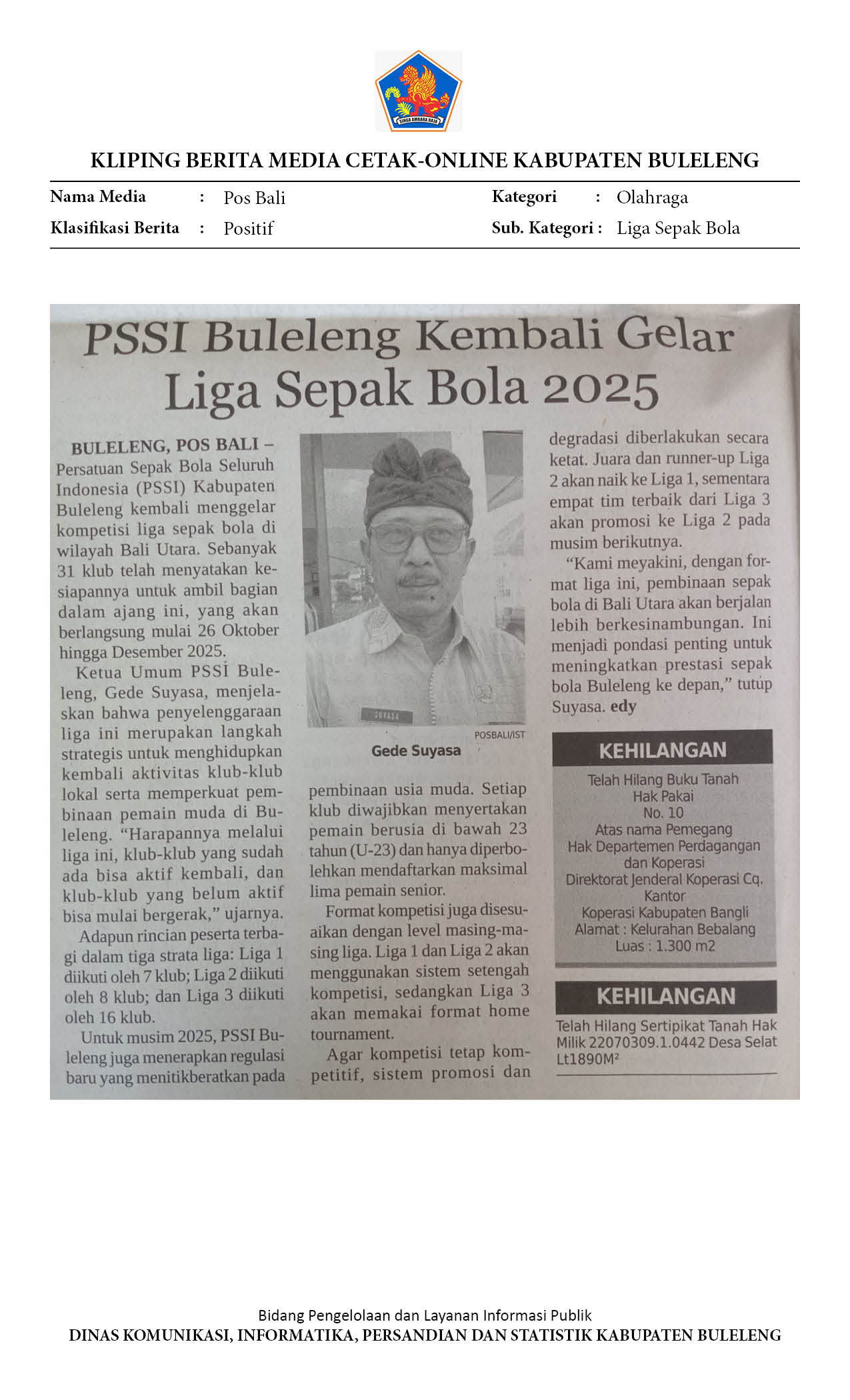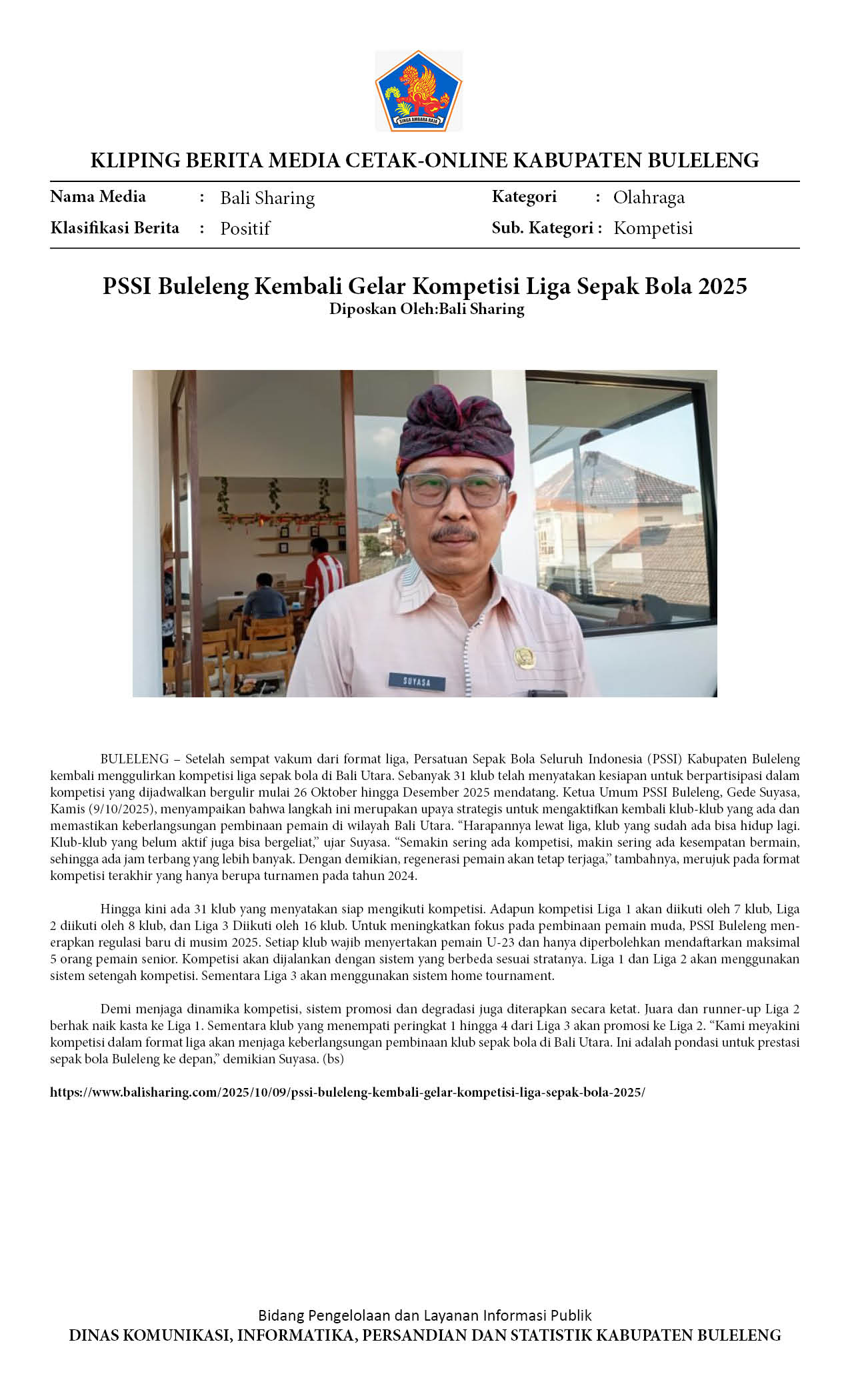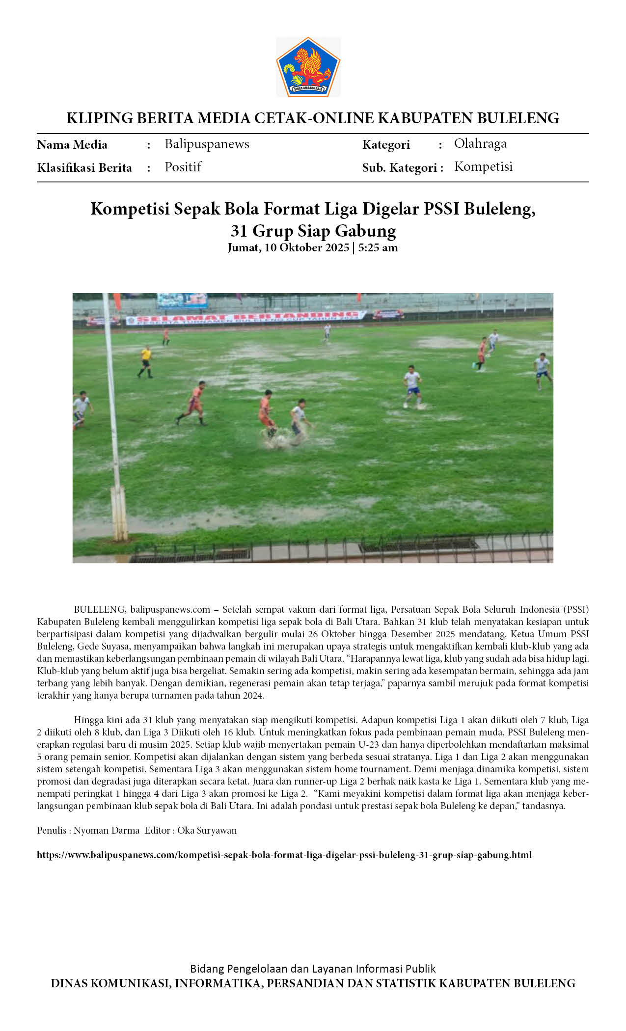 PSSI BULELENG KEMBALI GELAR LIGA SEPAK BOLA 2025