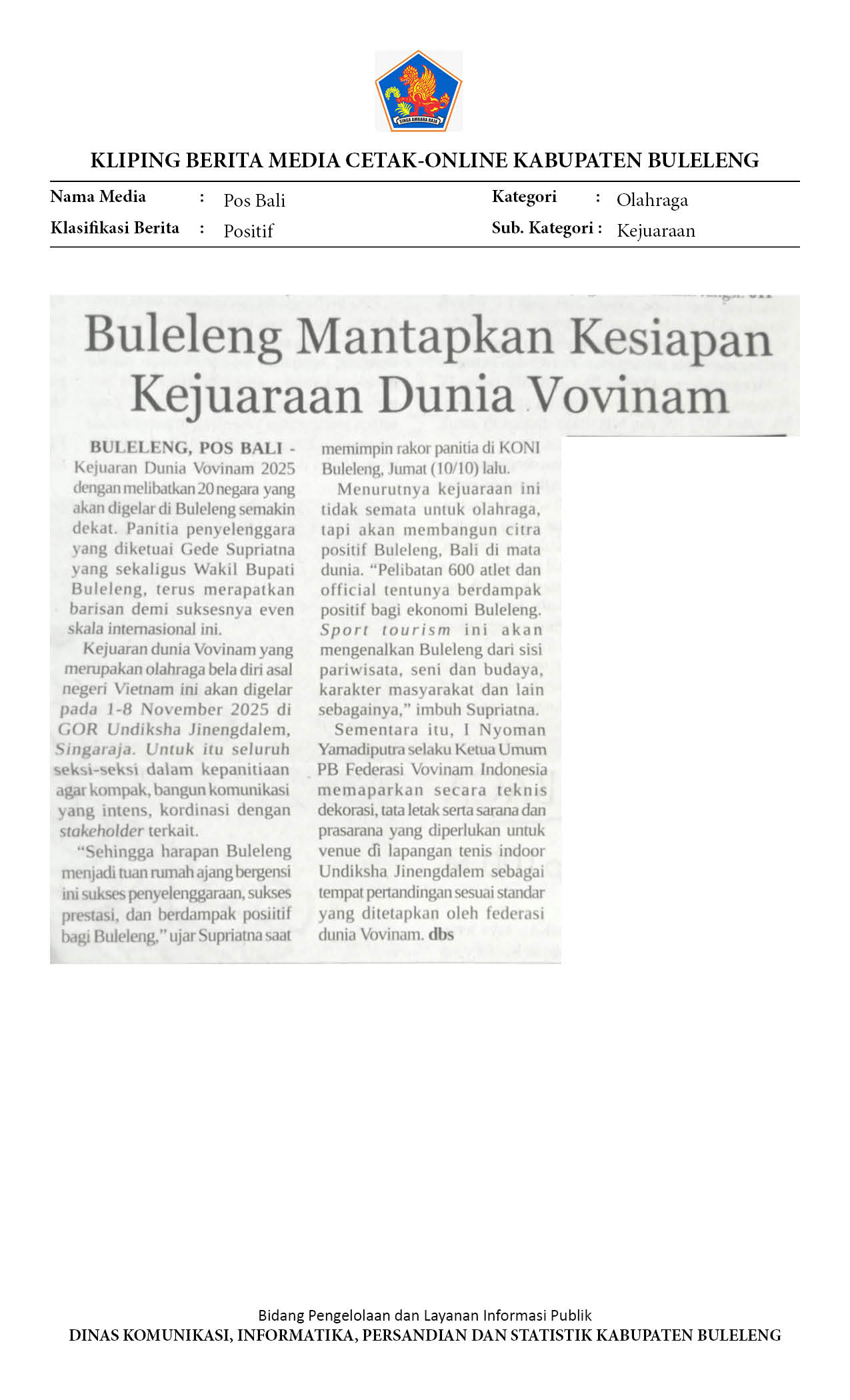 Kliping Kategori Olahraga Edisi 14 Oktober 2025