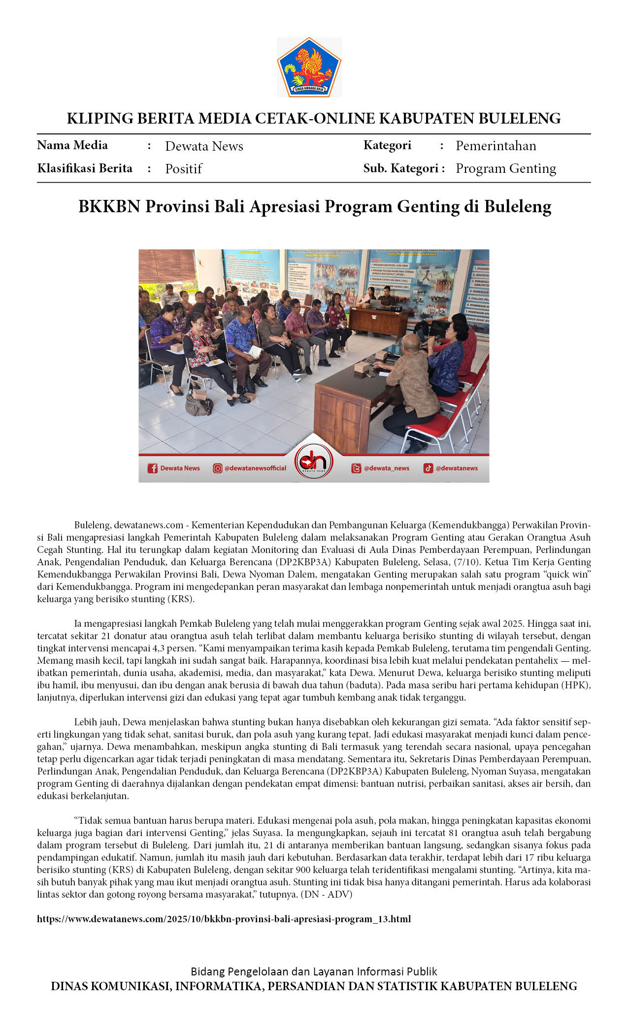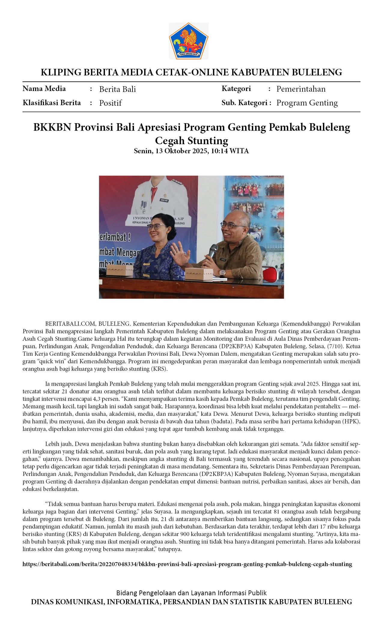 BKKBN PROVINSI BALI APRESIASI PROGRAM GENTING PEMKAB BULELENG CEGAH STUNTING