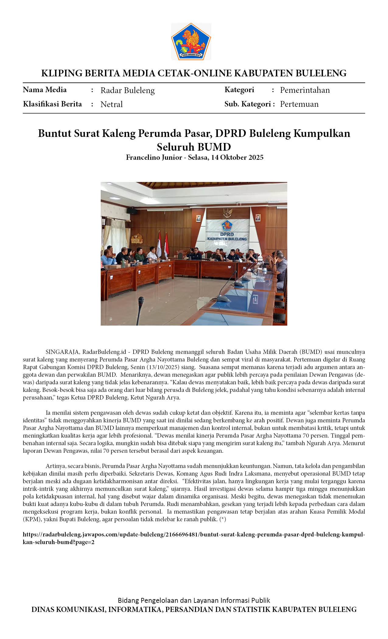 Kliping Kategori Pemerintahan Edisi 14 Oktober 2025