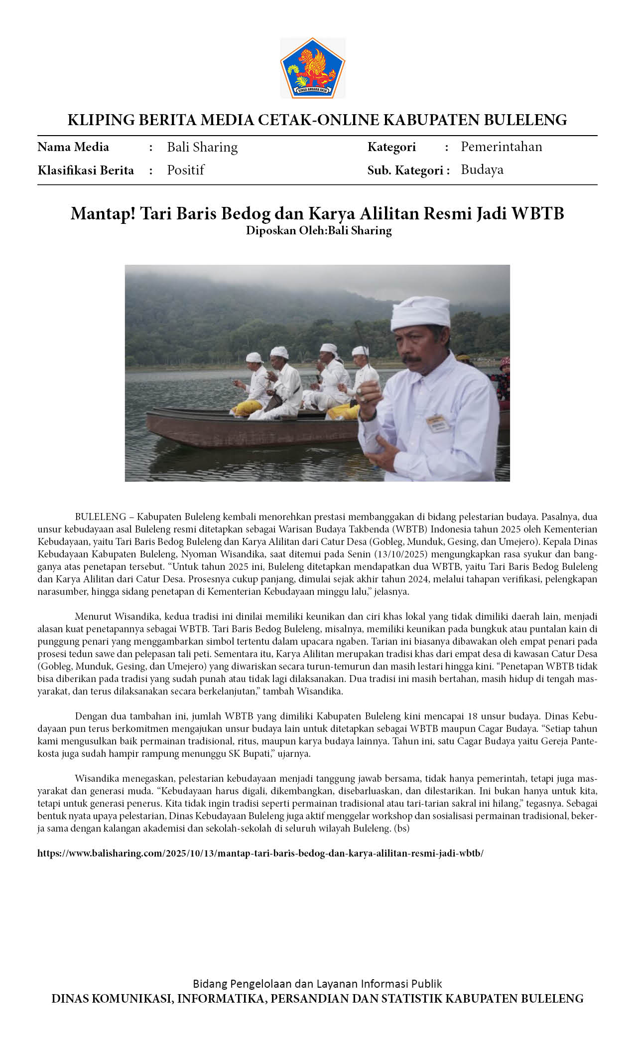MANTAP! TARI BARIS BEDOG DAN KARYA ALILITAN RESMI JADI WBTB