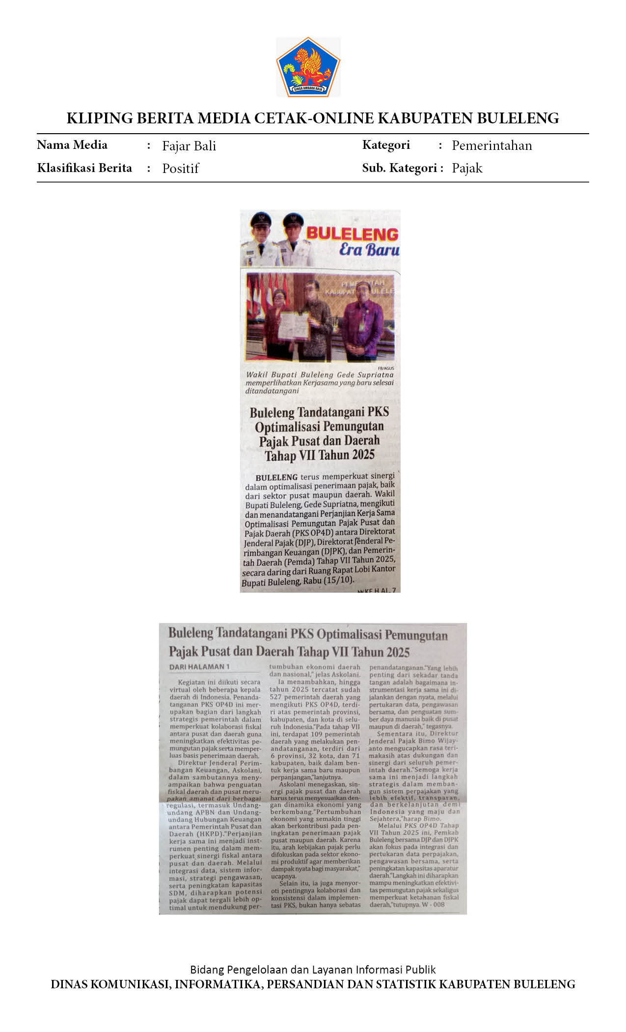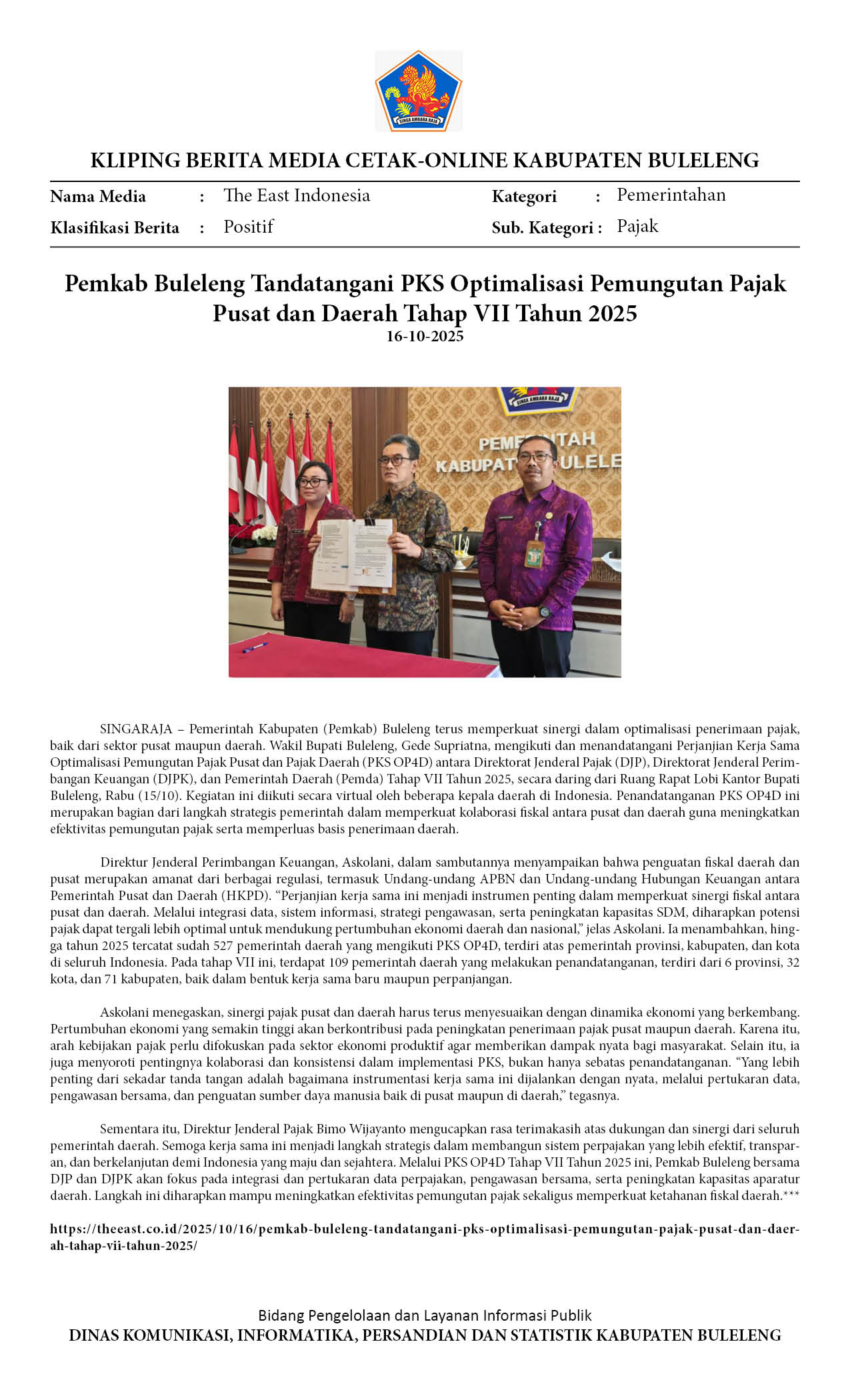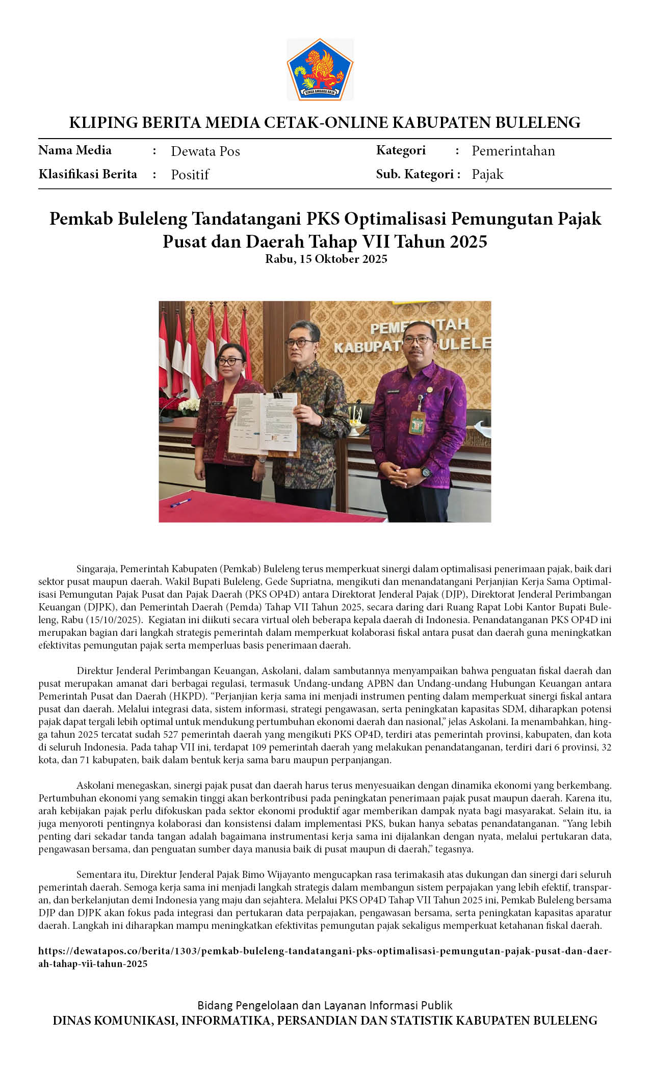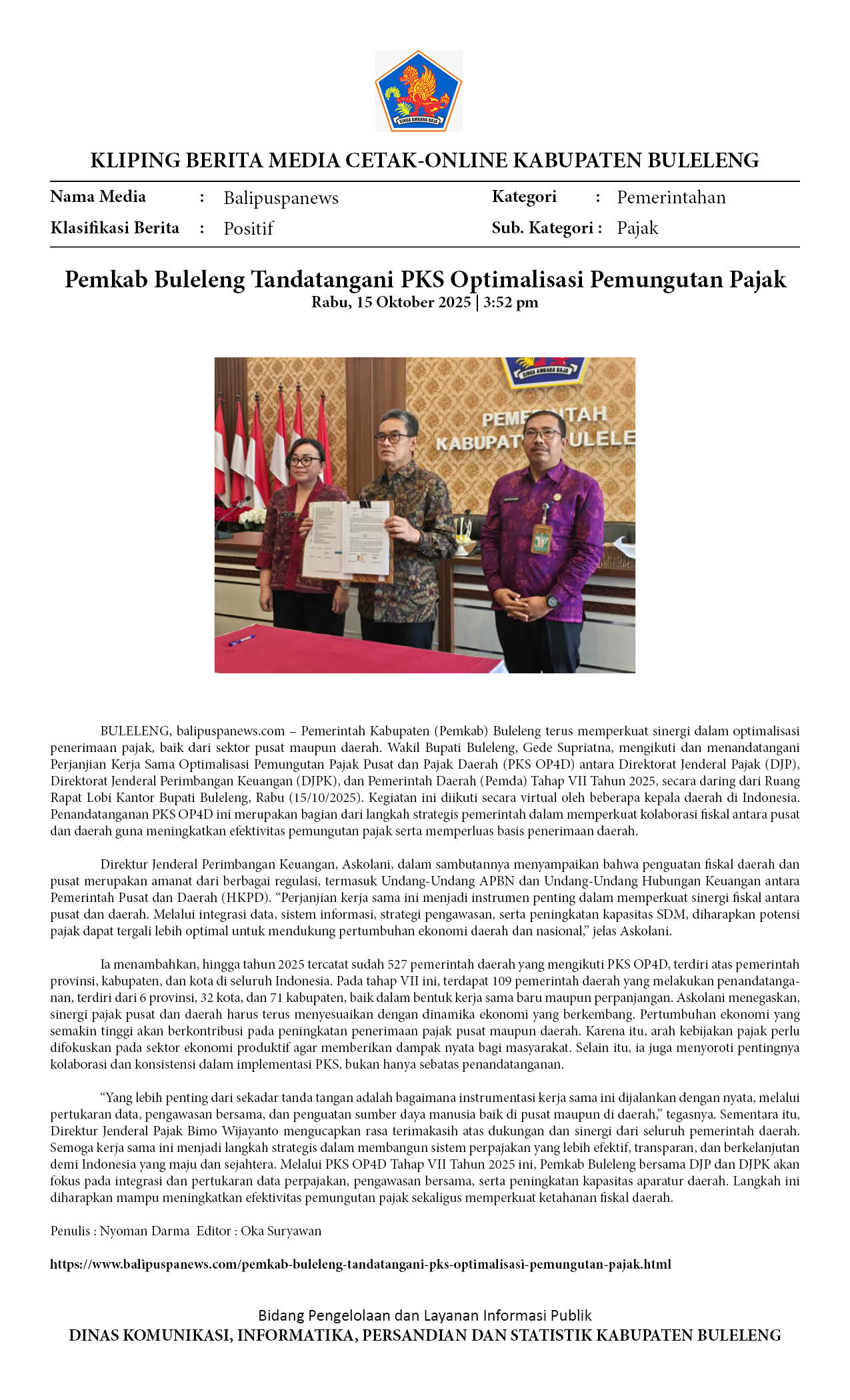 PEMKAB BULELENG TANDATANGANI PKS OPTIMALISASI PEMUNGUTAN PAJAK PUSAT DAN DAERAH TAHAP VII TAHUN 2025