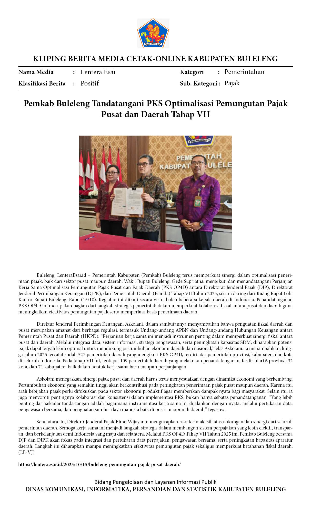 Kliping Kategori Pemerintahan Edisi 16 Oktober 2025