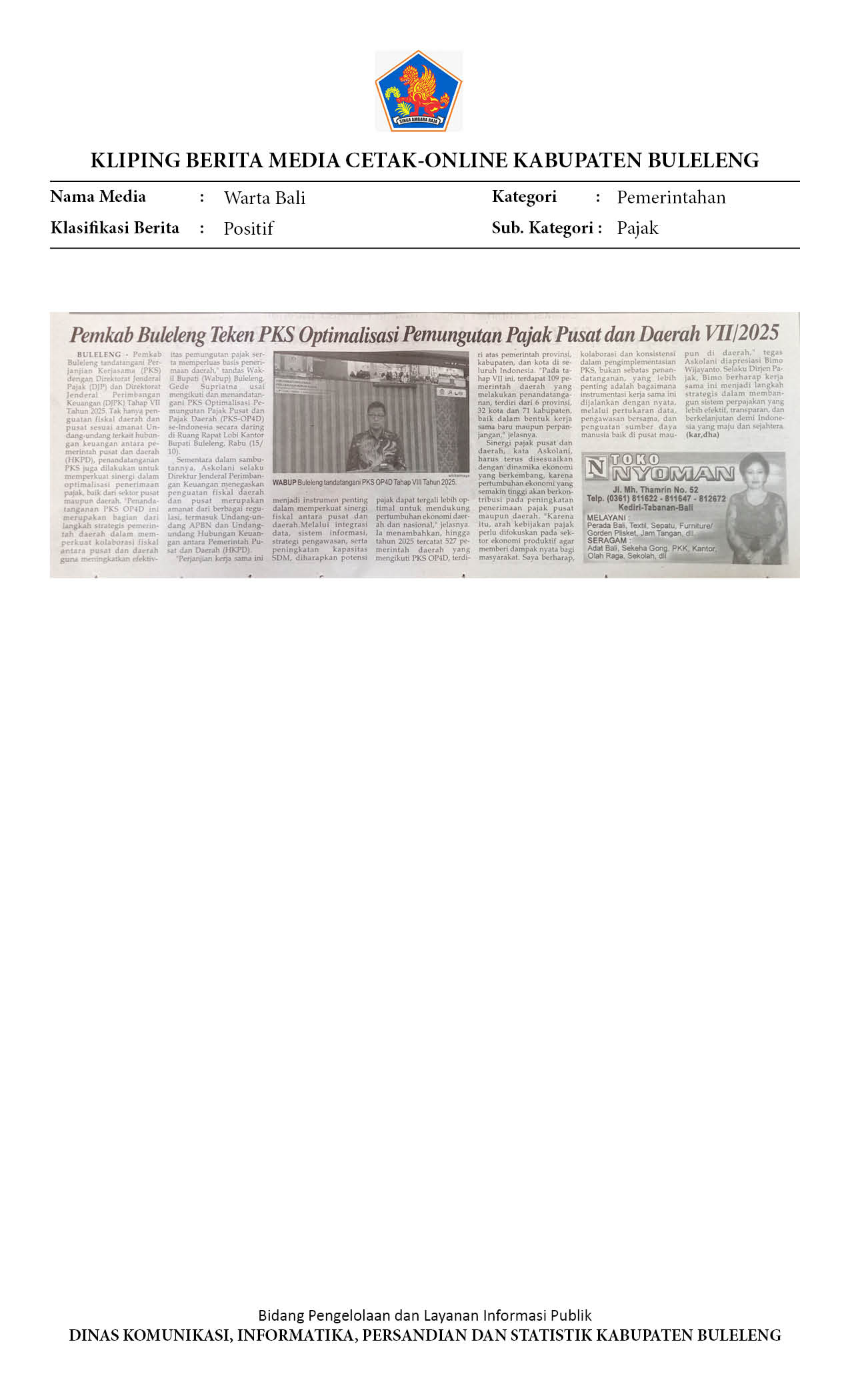 PEMKAB BULELENG TEKEN PKS OPTIMALISASI PEMUNGUTAN PAJAK PUSAT DAN DAERAH VII/2025