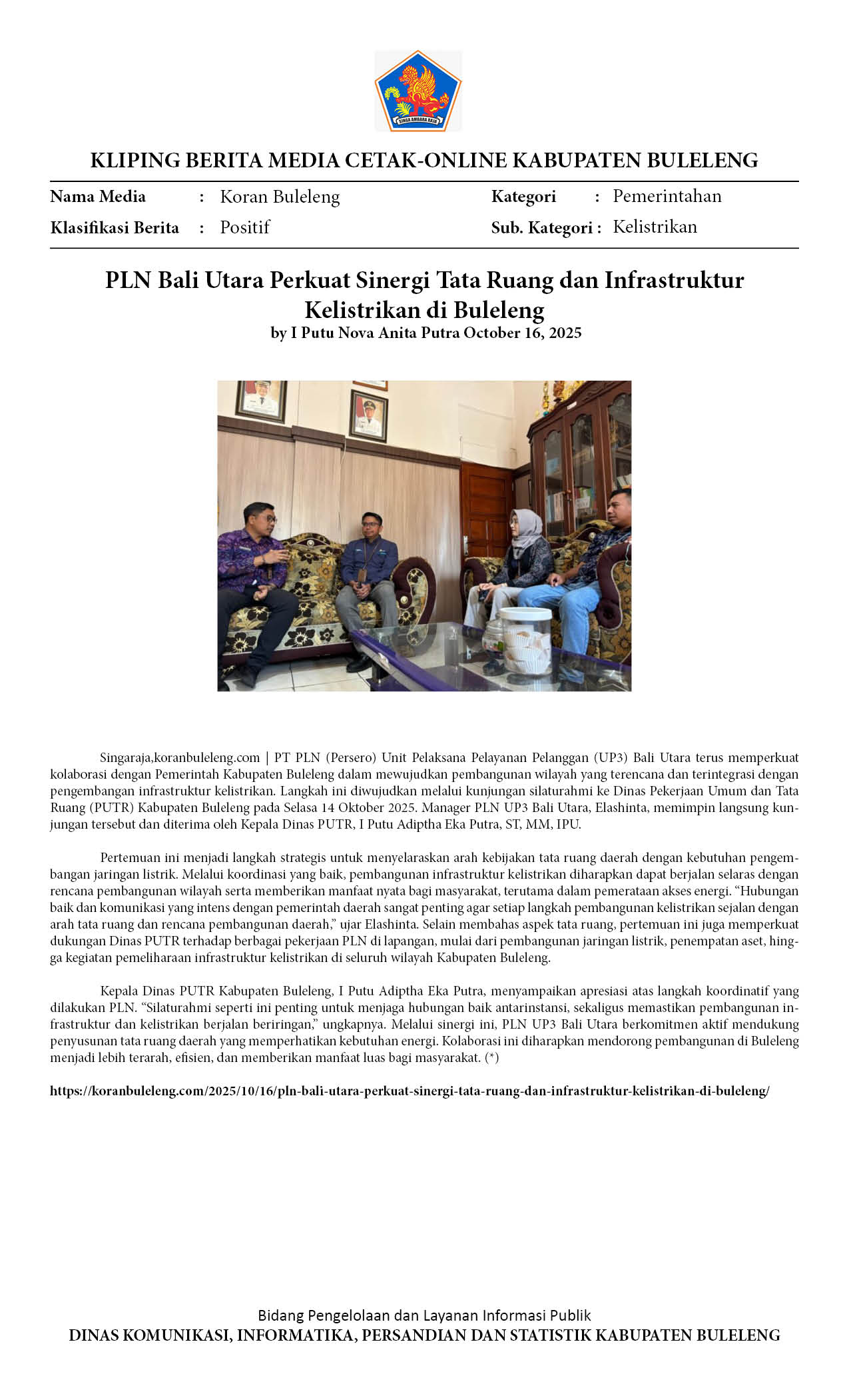 PLN BALI UTARA PERKUAT SINERGI TATA RUANG DAN INFRASTRUKTUR KELISTRIKAN DI BULELENG