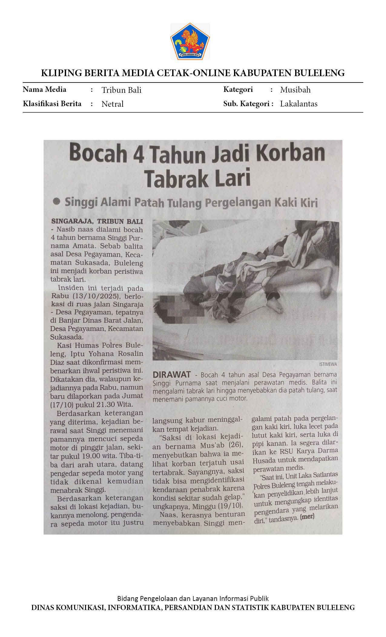POLISI MASIH SELIDIKI PELAKU TABRAK LARI BOCAH 4 TAHUN DI PEGAYAMAN