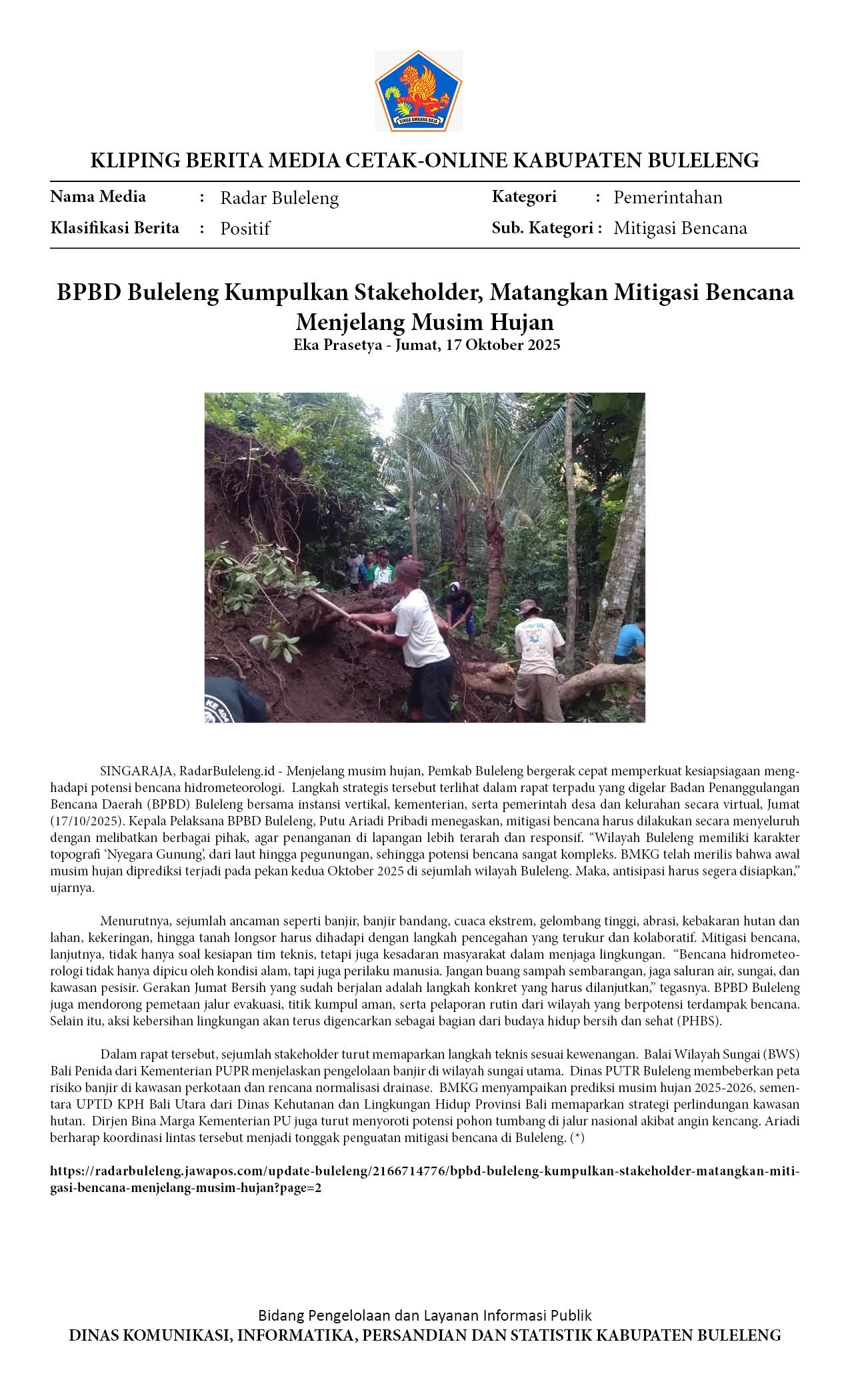 BULELENG KUATKAN SINERGI MITIGASI BENCANA HIDROMETEOROLOGI, WARGA DIDORONG AKTIF CEGAH DAMPAK LINGKUNGAN