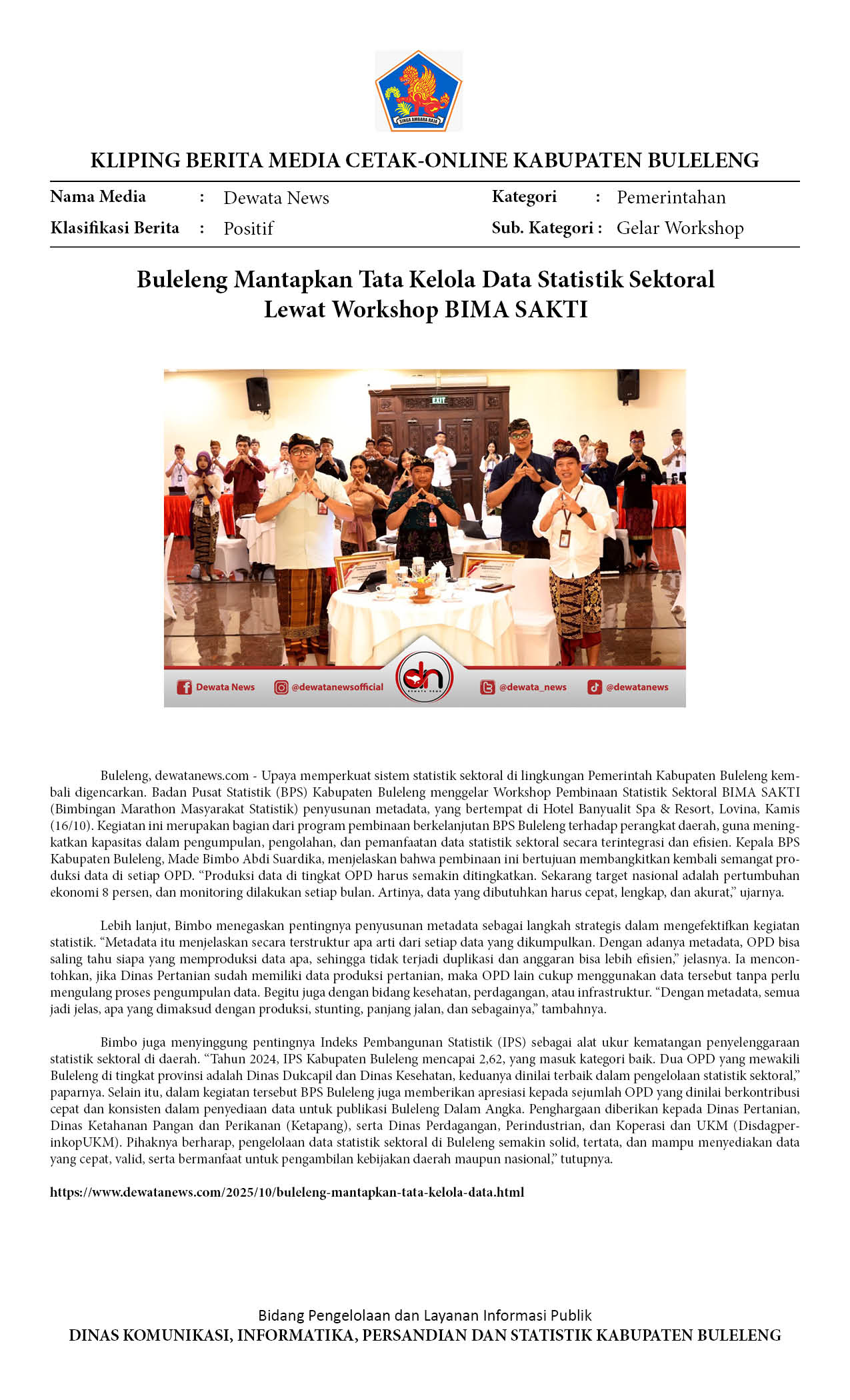 BULELENG MANTAPKAN TATA KELOLA DATA STATISTIK SEKTORAL LEWAT WORKSHOP BIMA SAKTI