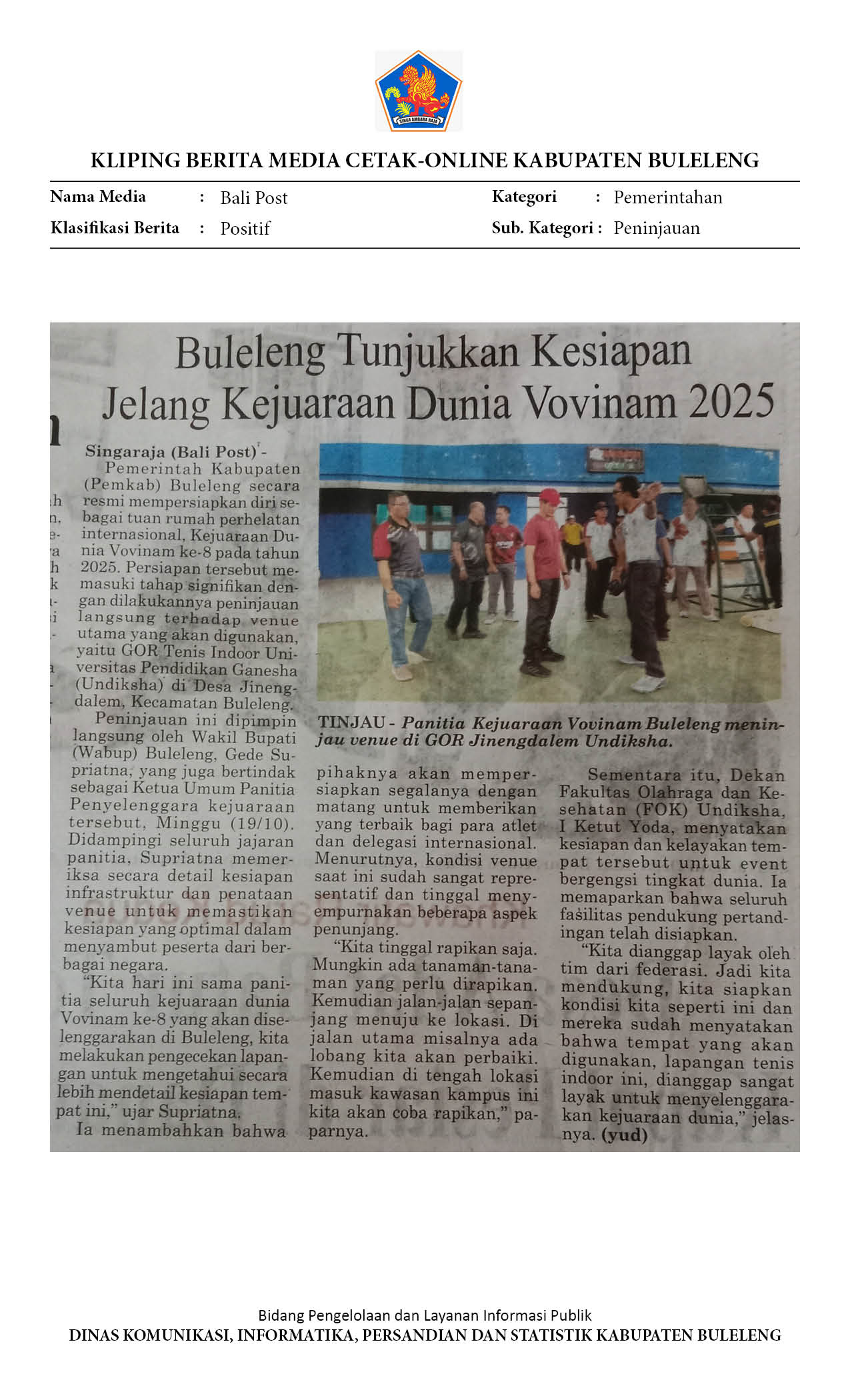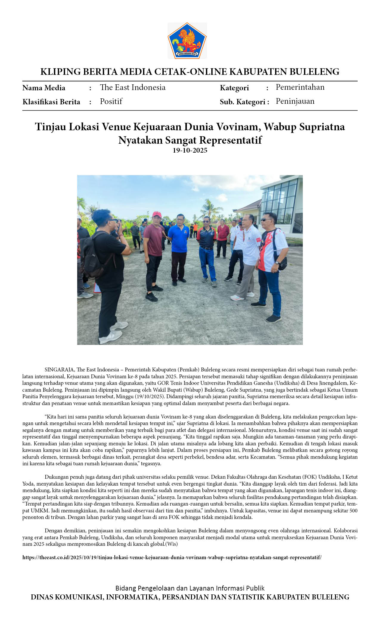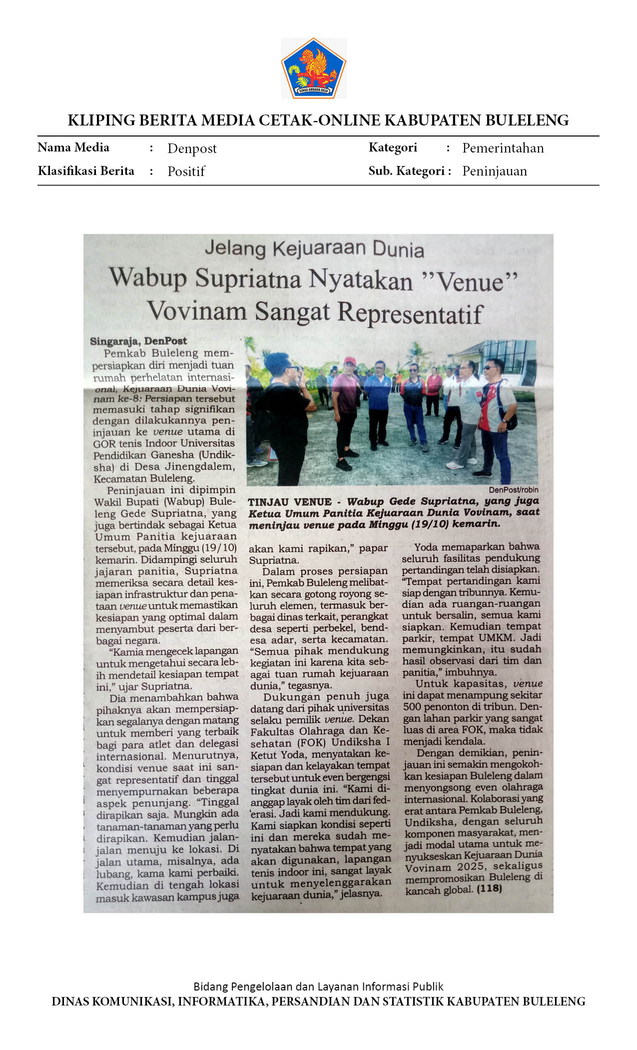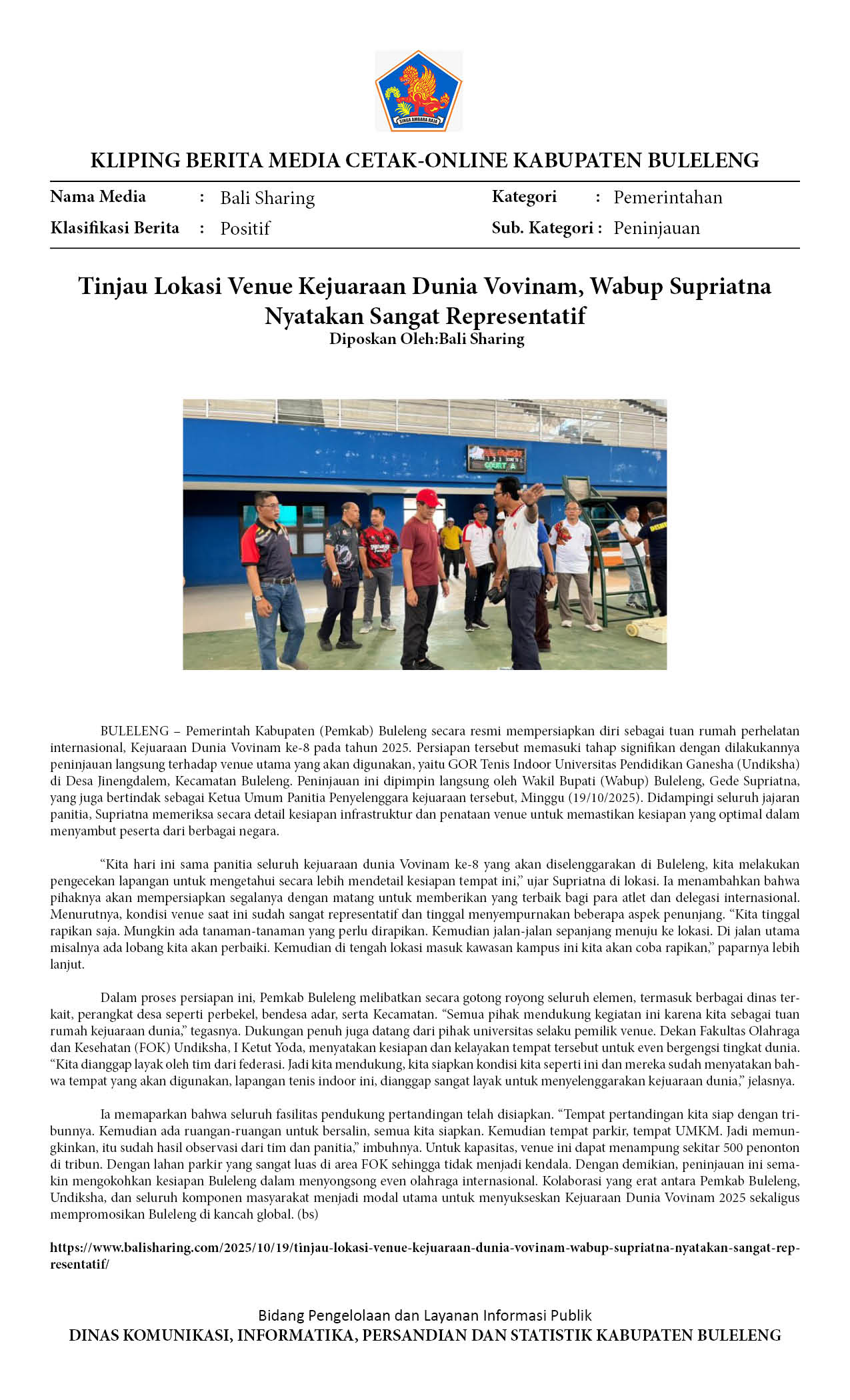 TINJAU VENUE KEJUARAAN DUNIA VOVINAM, WABUP SUPRIATNA NILAI GOR UNDIKSHA SANGAT REPRESENTATIF