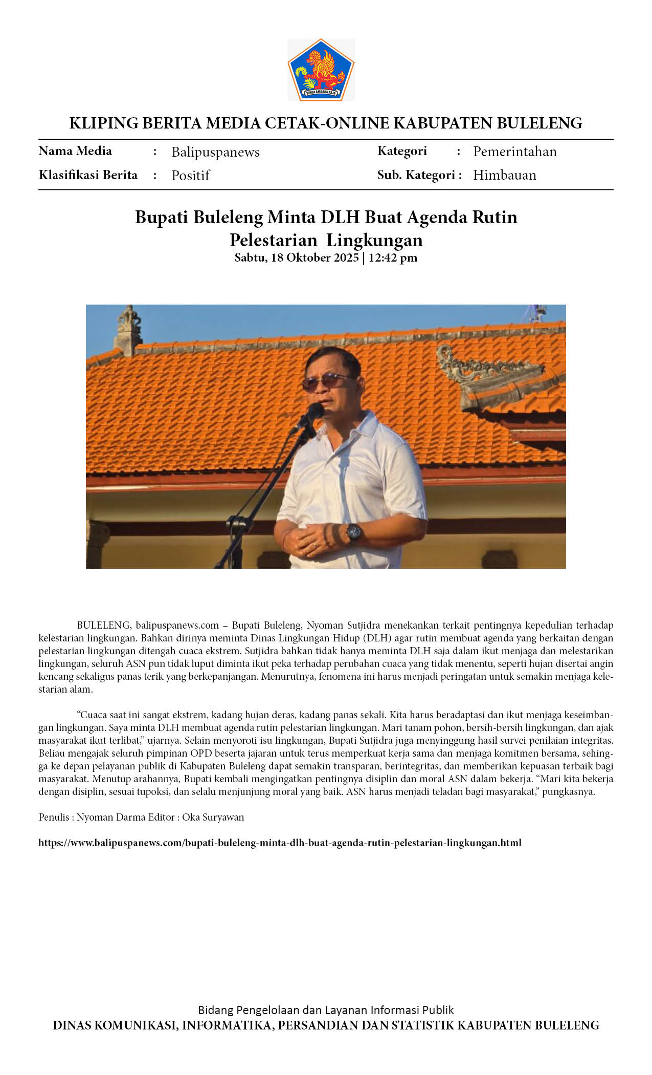 BUPATI BULELENG MINTA DLH BUAT AGENDA RUTIN PELESTARIAN LINGKUNGAN
