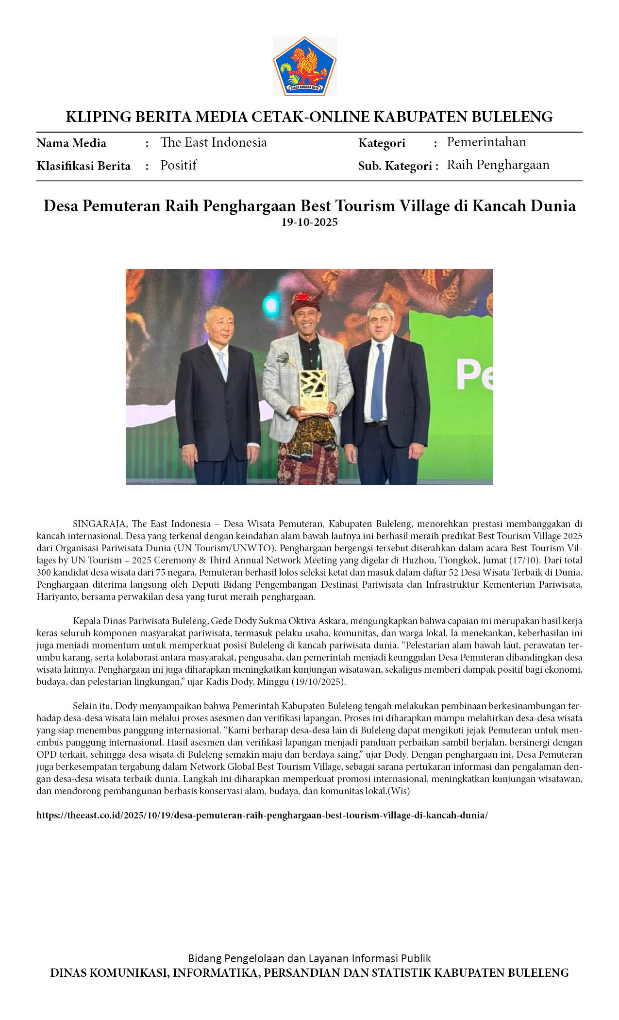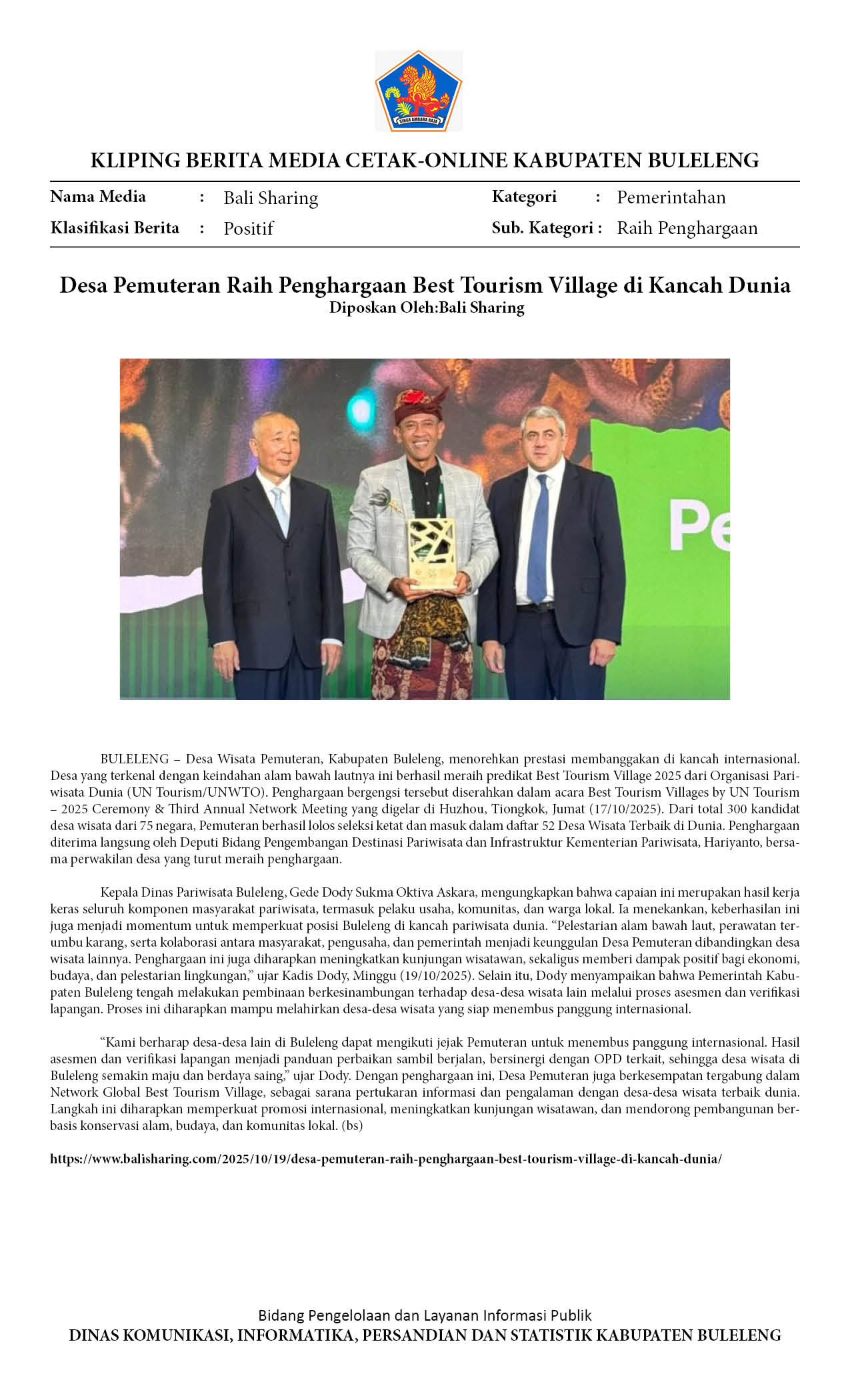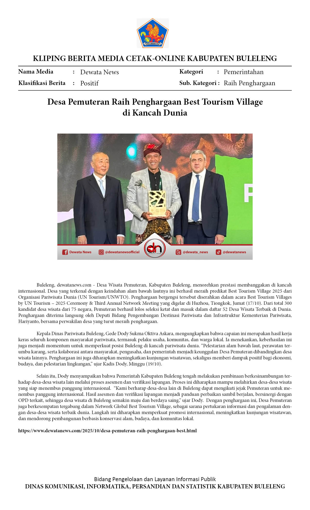 DESA PEMUTERAN RAIH PENGHARGAAN DESA WISATA TERBAIK DI DUNIA