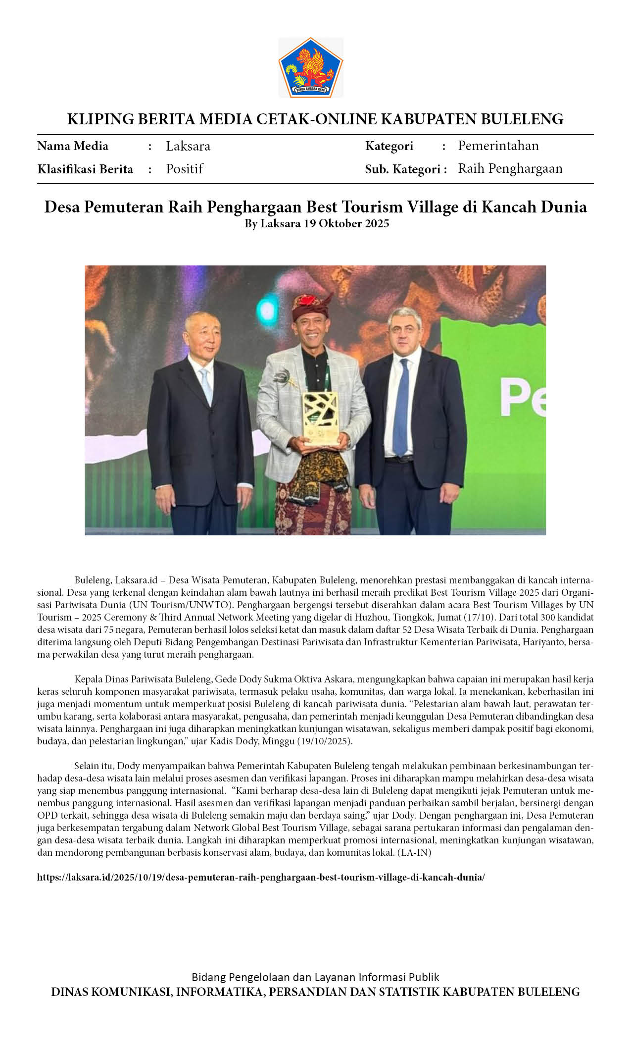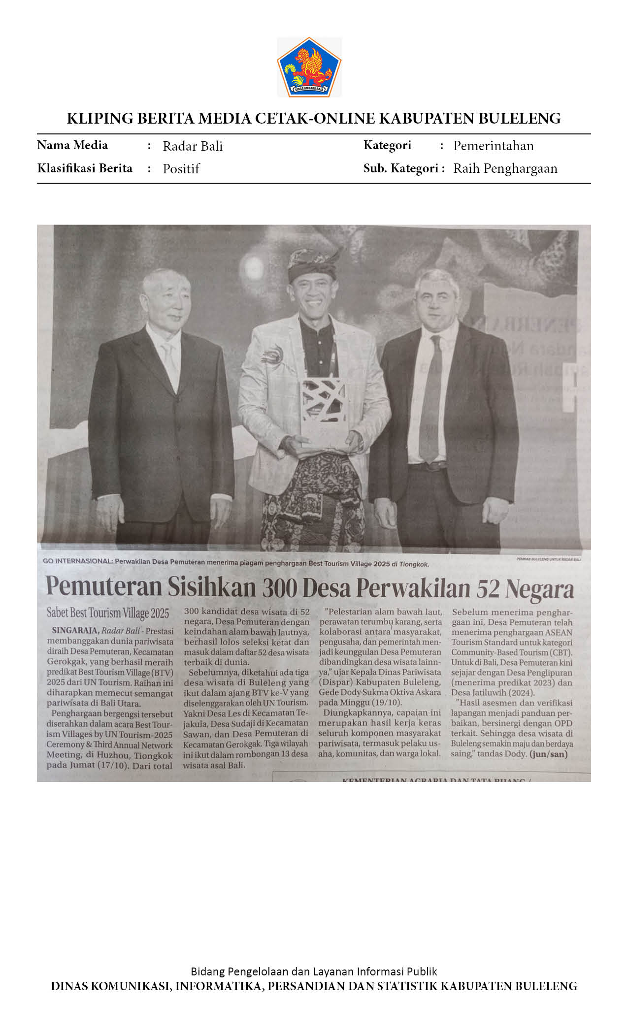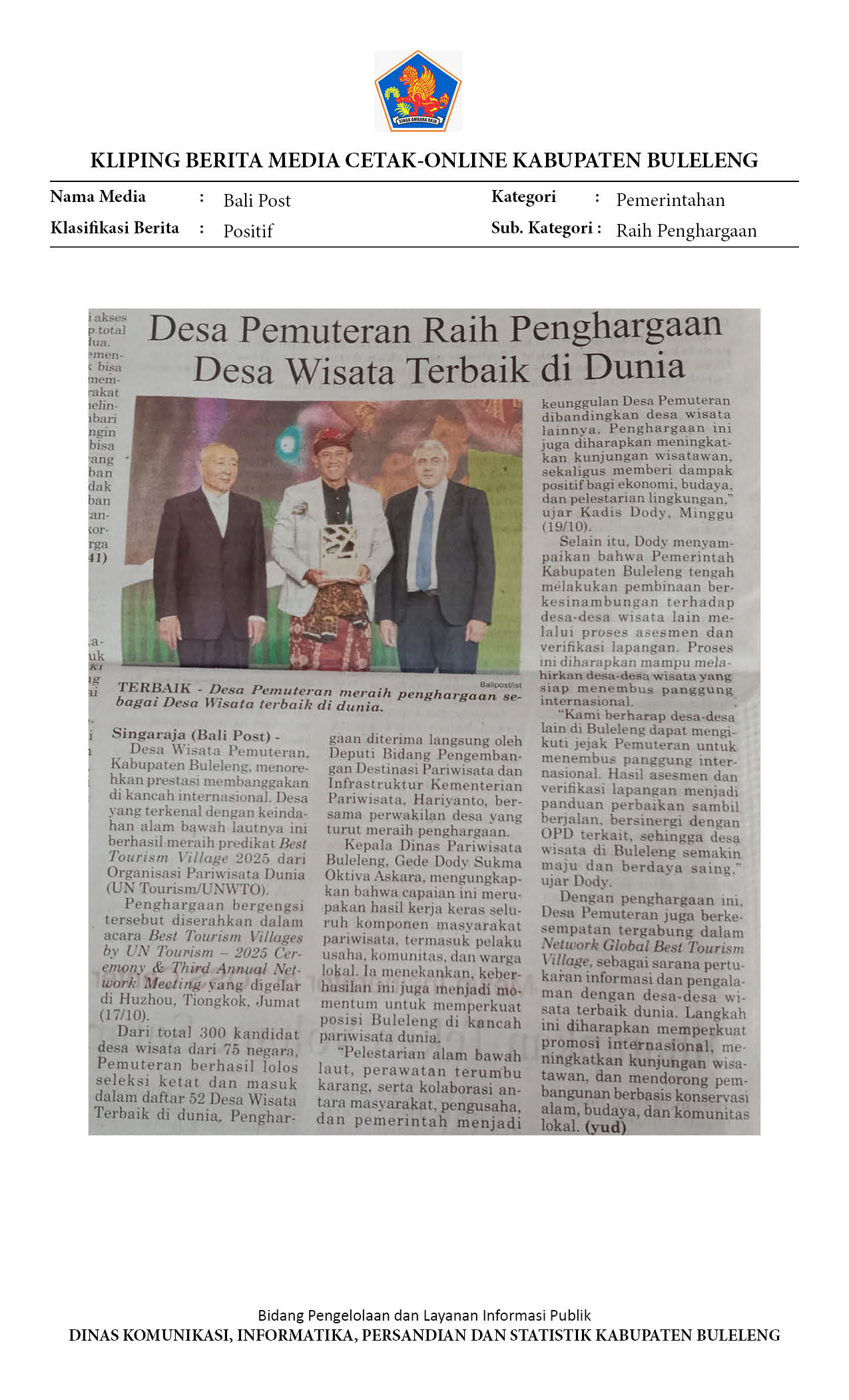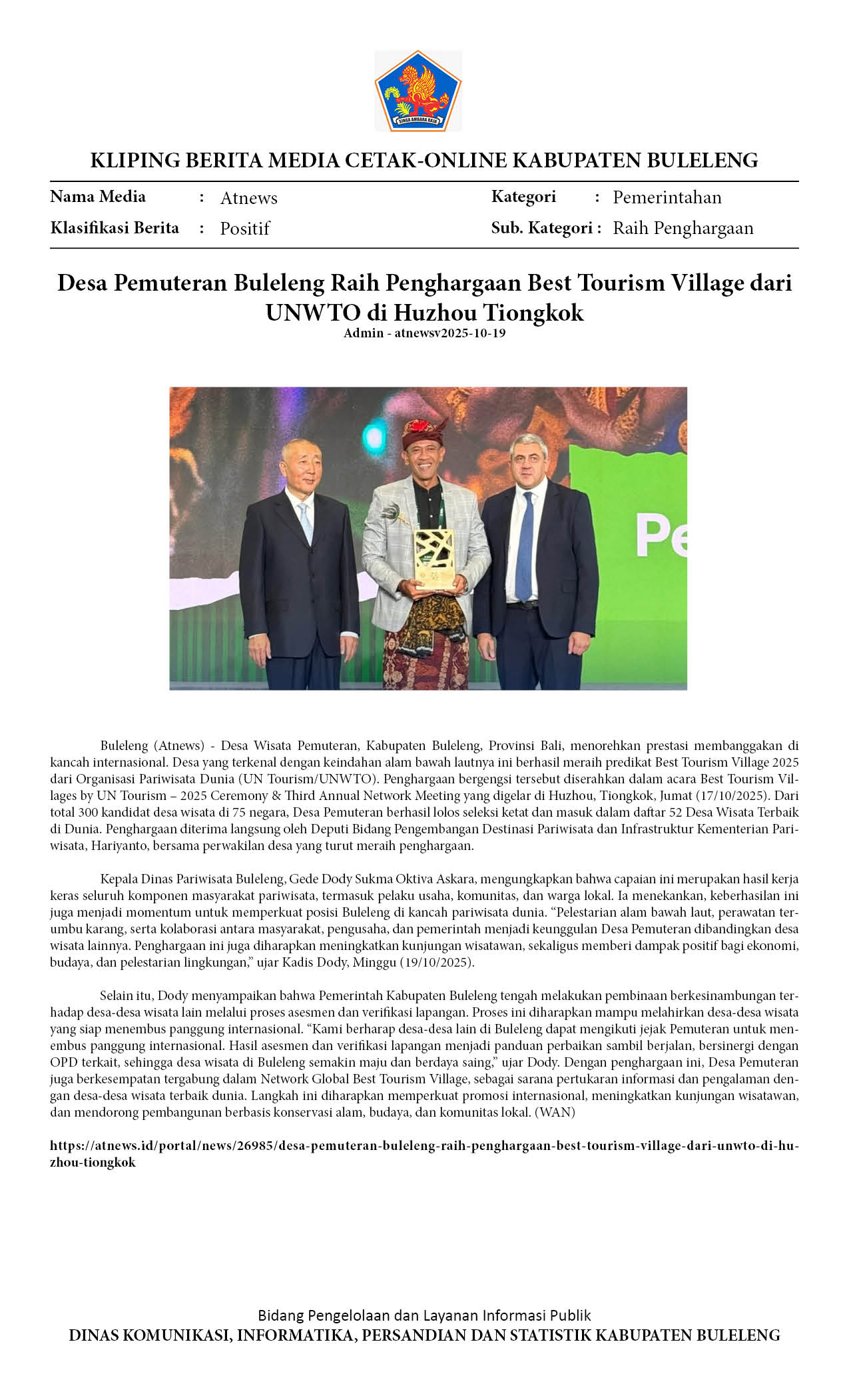 DESA PEMUTERAN RAIH PENGHARGAAN DESA WISATA TERBAIK DI DUNIA