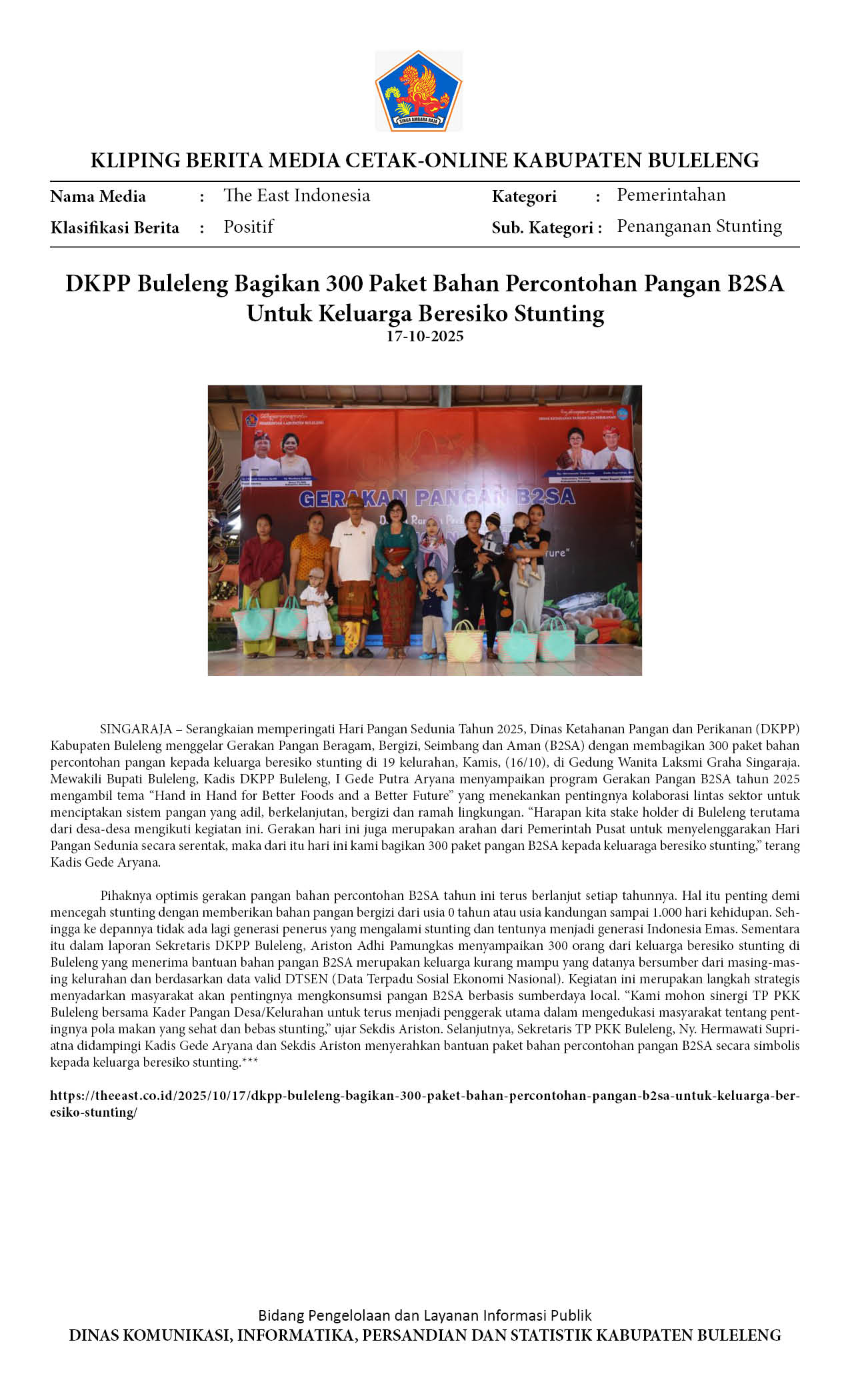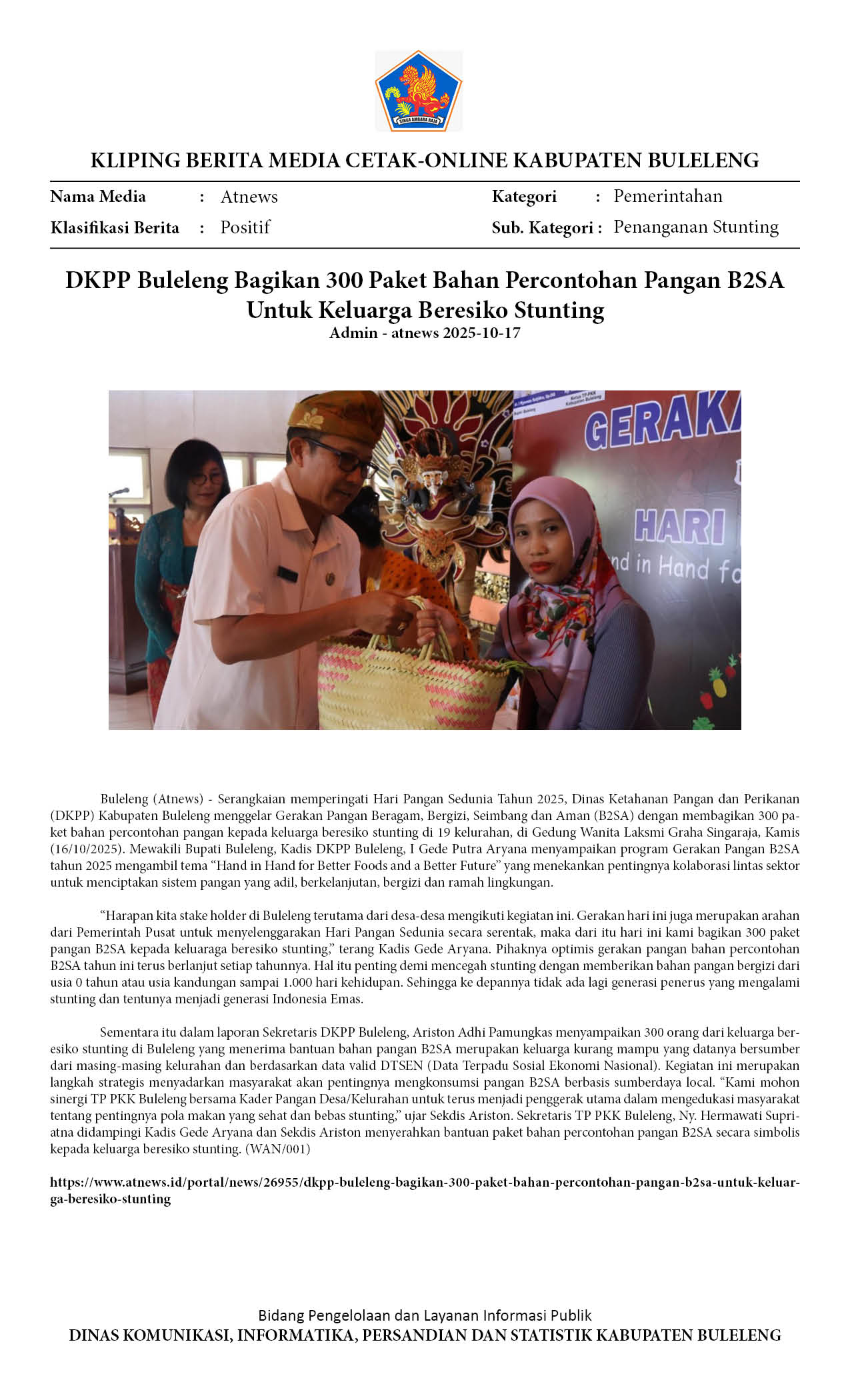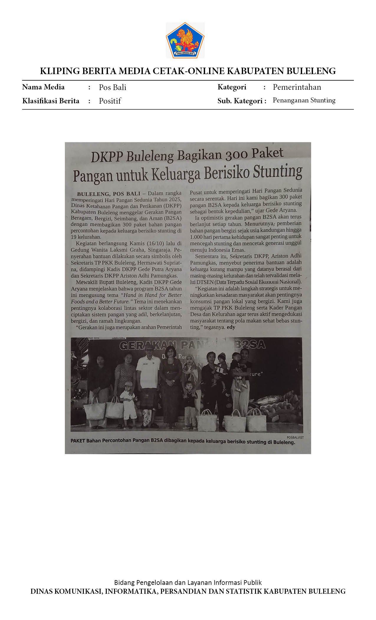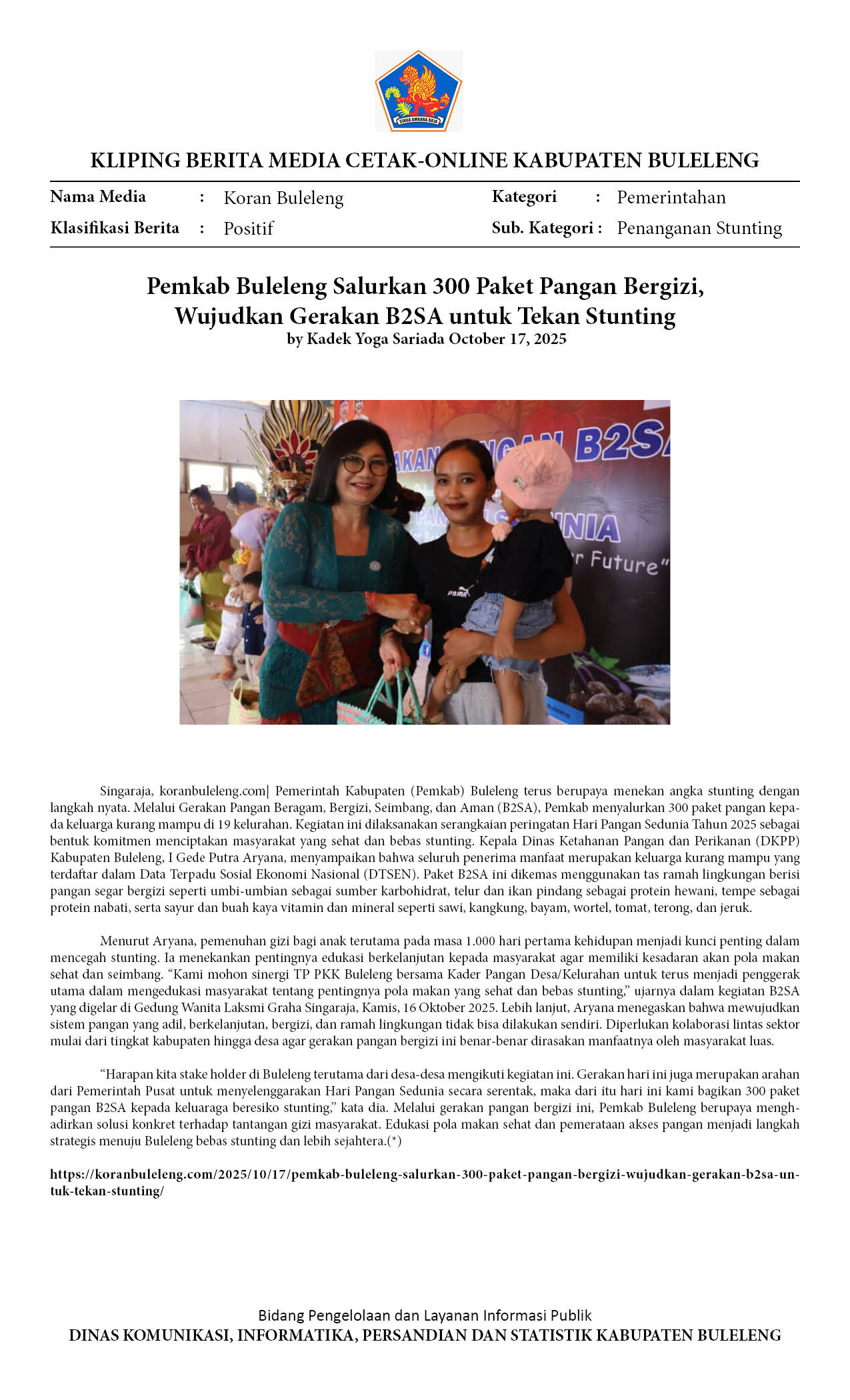PEMKAB BULELENG SALURKAN 300 PAKET PANGAN BERGIZI, WUJUDKAN GERAKAN B2SA UNTUK TEKAN STUNTING
