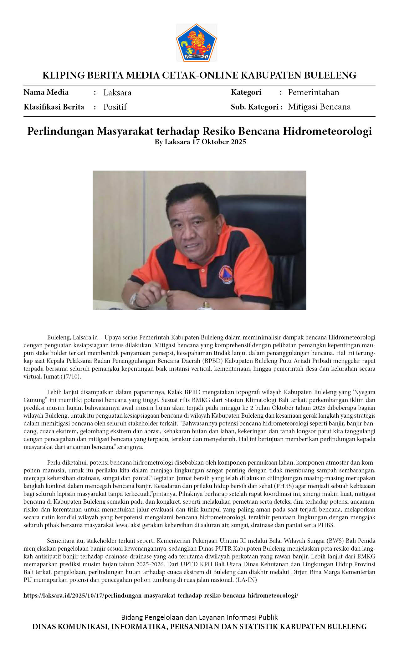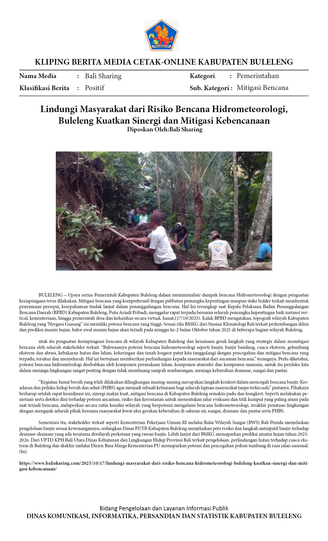 LINDUNGI MASYARAKAT DARI RISIKO BENCANA HIDROMETEOROLOGI, BULELENG KUATKAN SINERGI DAN MITIGASI KEBENCANAAN