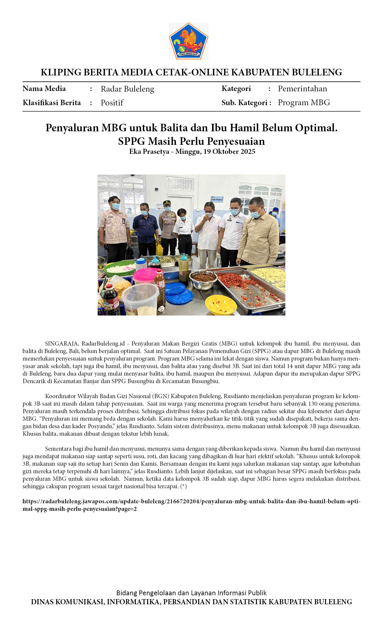 PENYALURAN MBG UNTUK BALITA DAN IBU HAMIL BELUM OPTIMAL. SPPG MASIH PERLU PENYESUAIAN