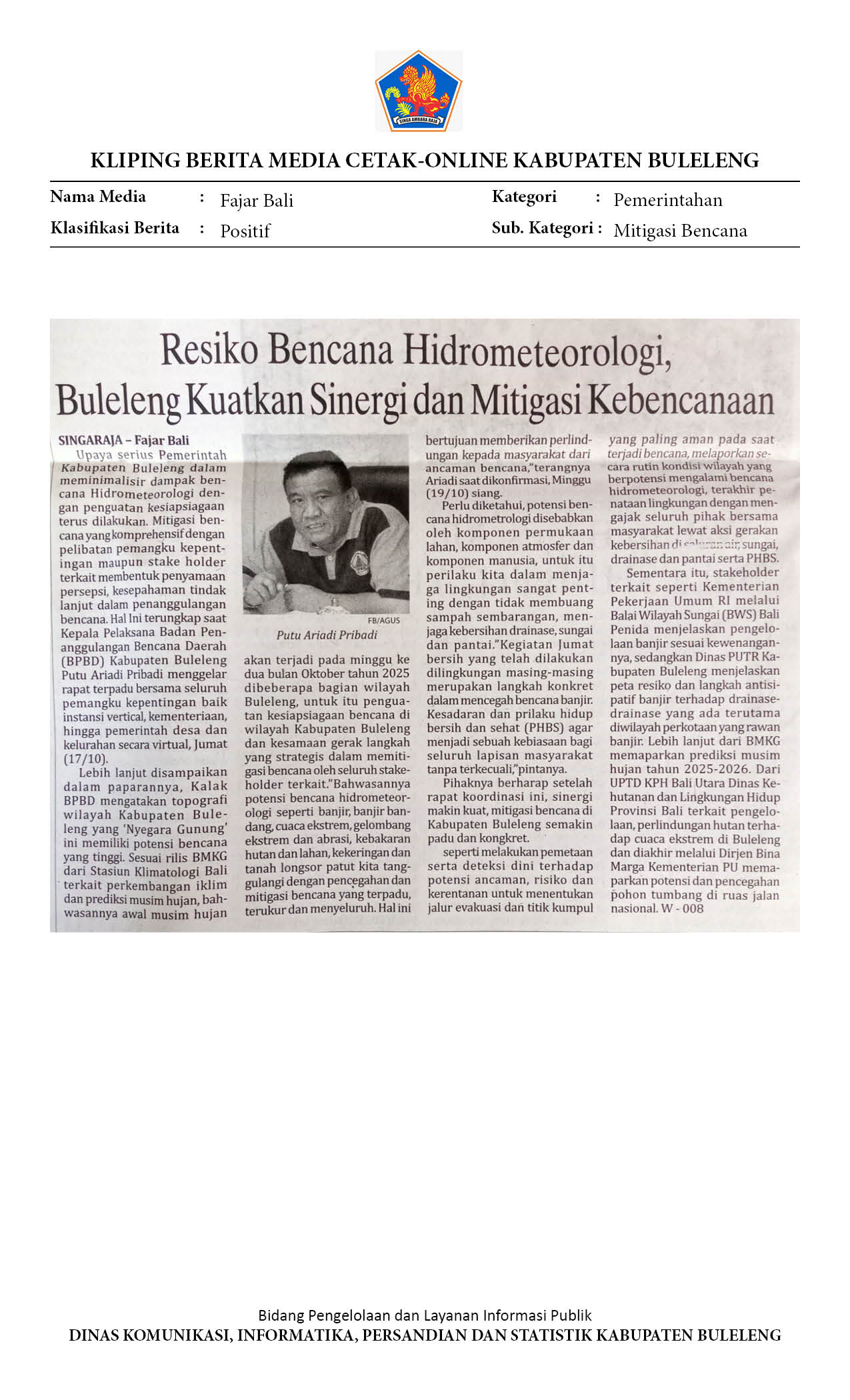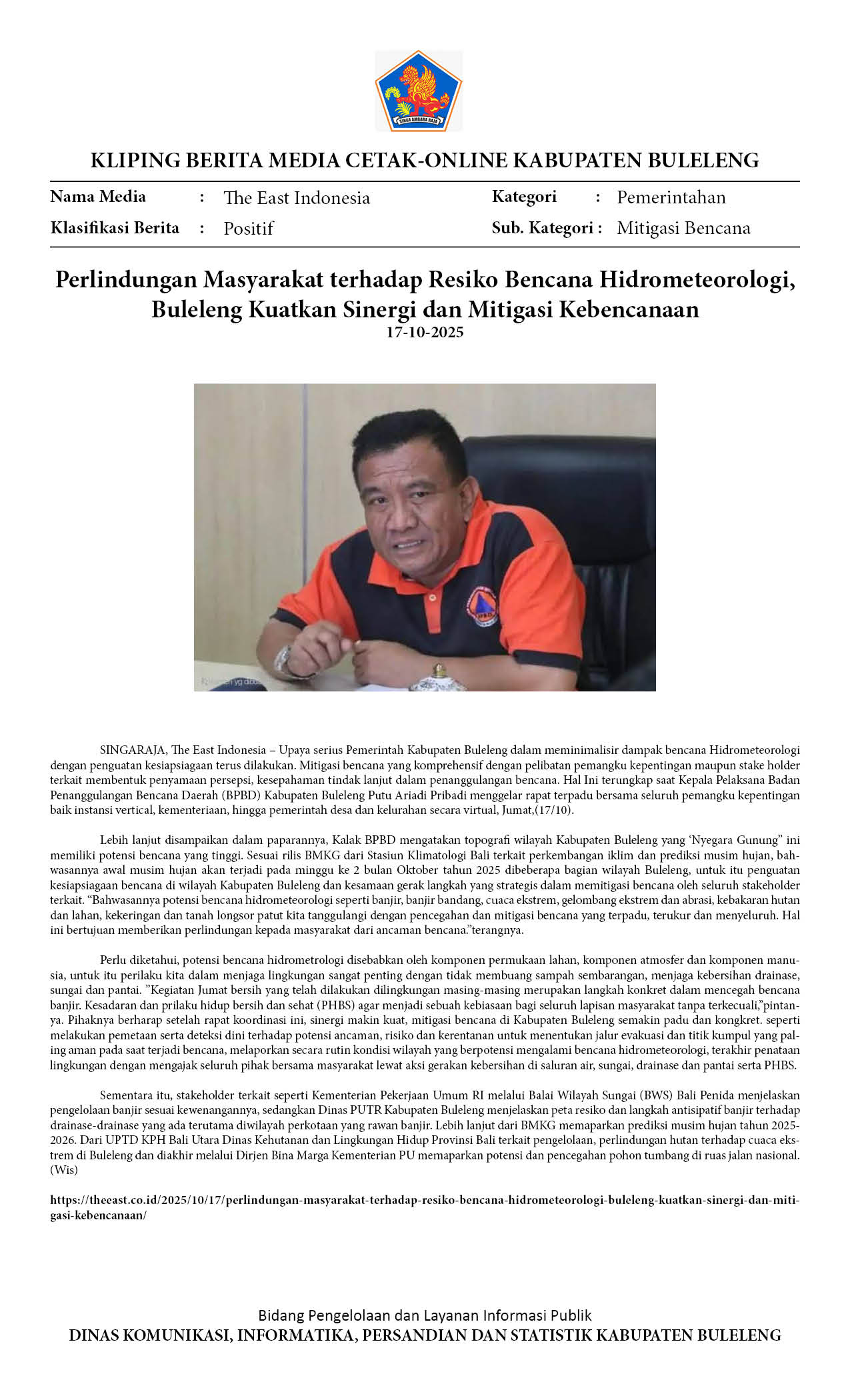 PERLINDUNGAN MASYARAKAT TERHADAP RESIKO BENCANA HIDROMETEOROLOGI, BULELENG KUATKAN SINERGI DAN MITIGASI KEBENCANAAN