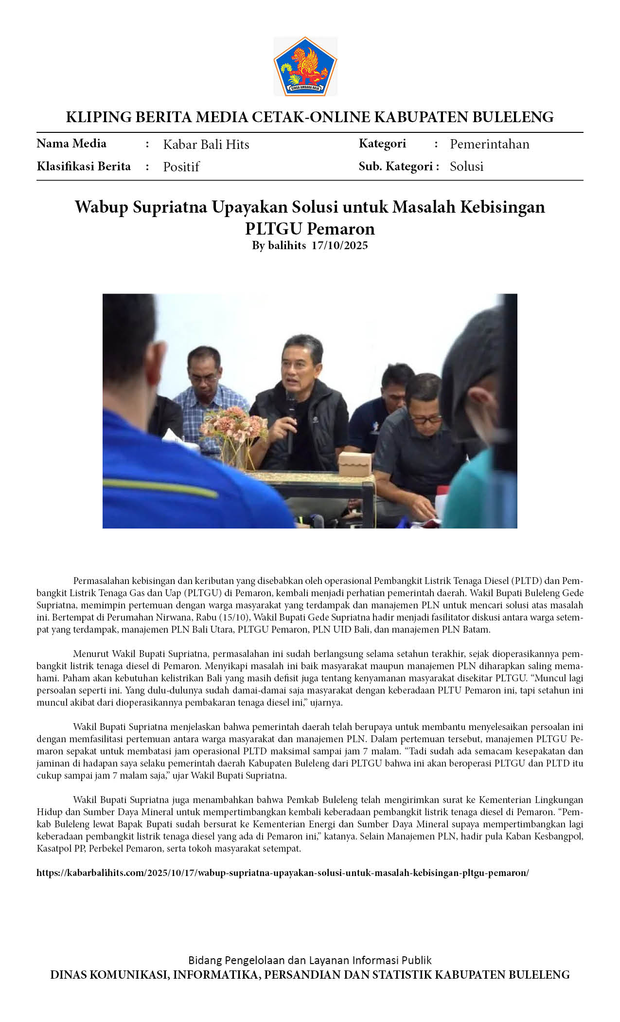 WABUP SUPRIATNA UPAYAKAN SOLUSI UNTUK MASALAH KEBISINGAN PLTGU PEMARON