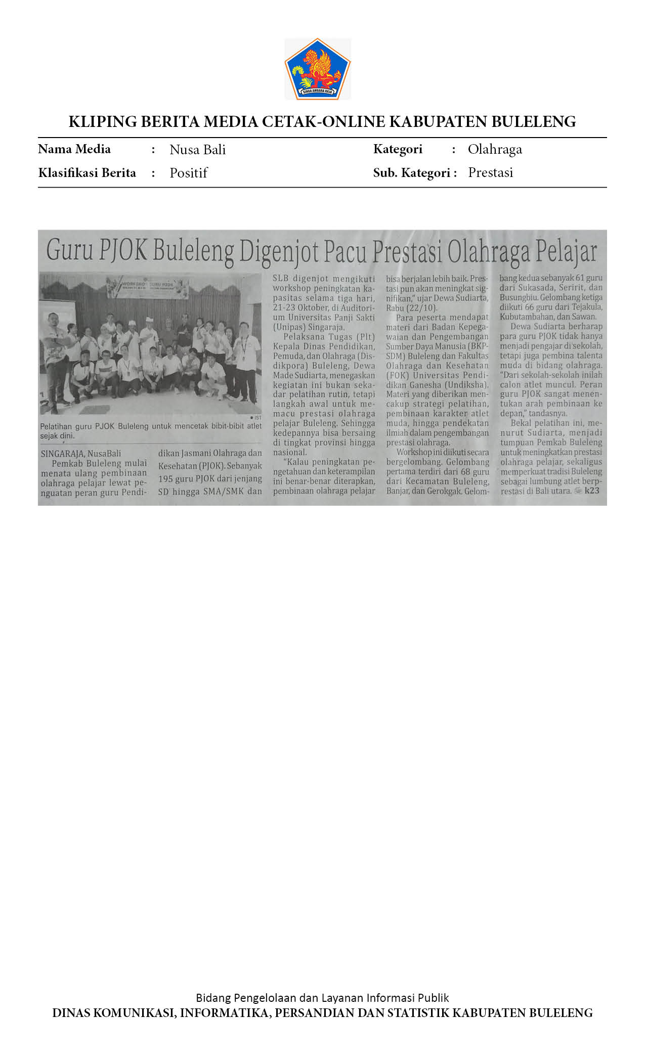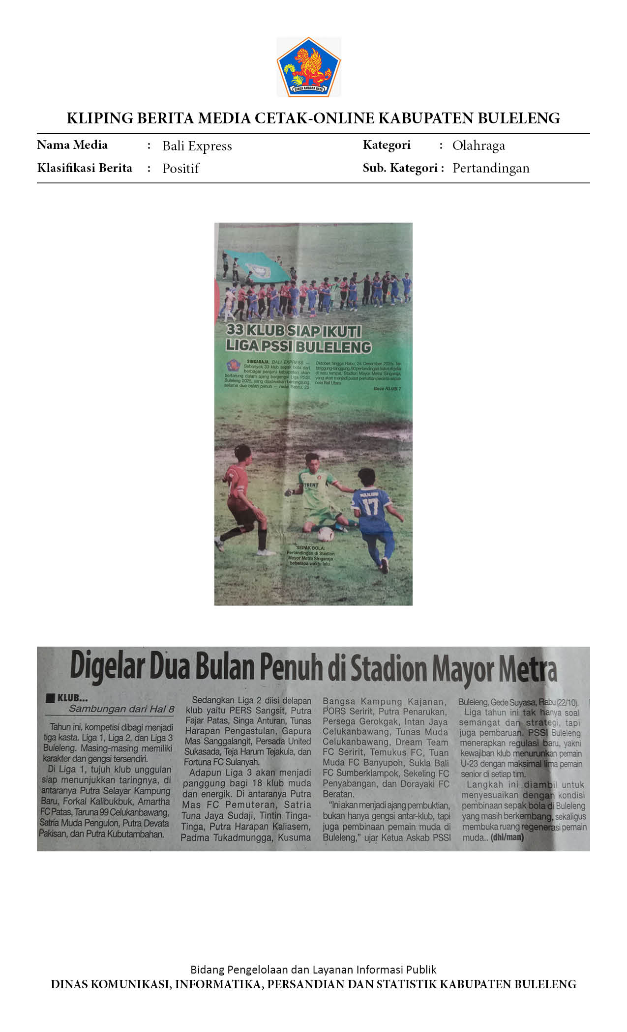 Kliping Kategori Olahraga Edisi 23 Oktober 2025