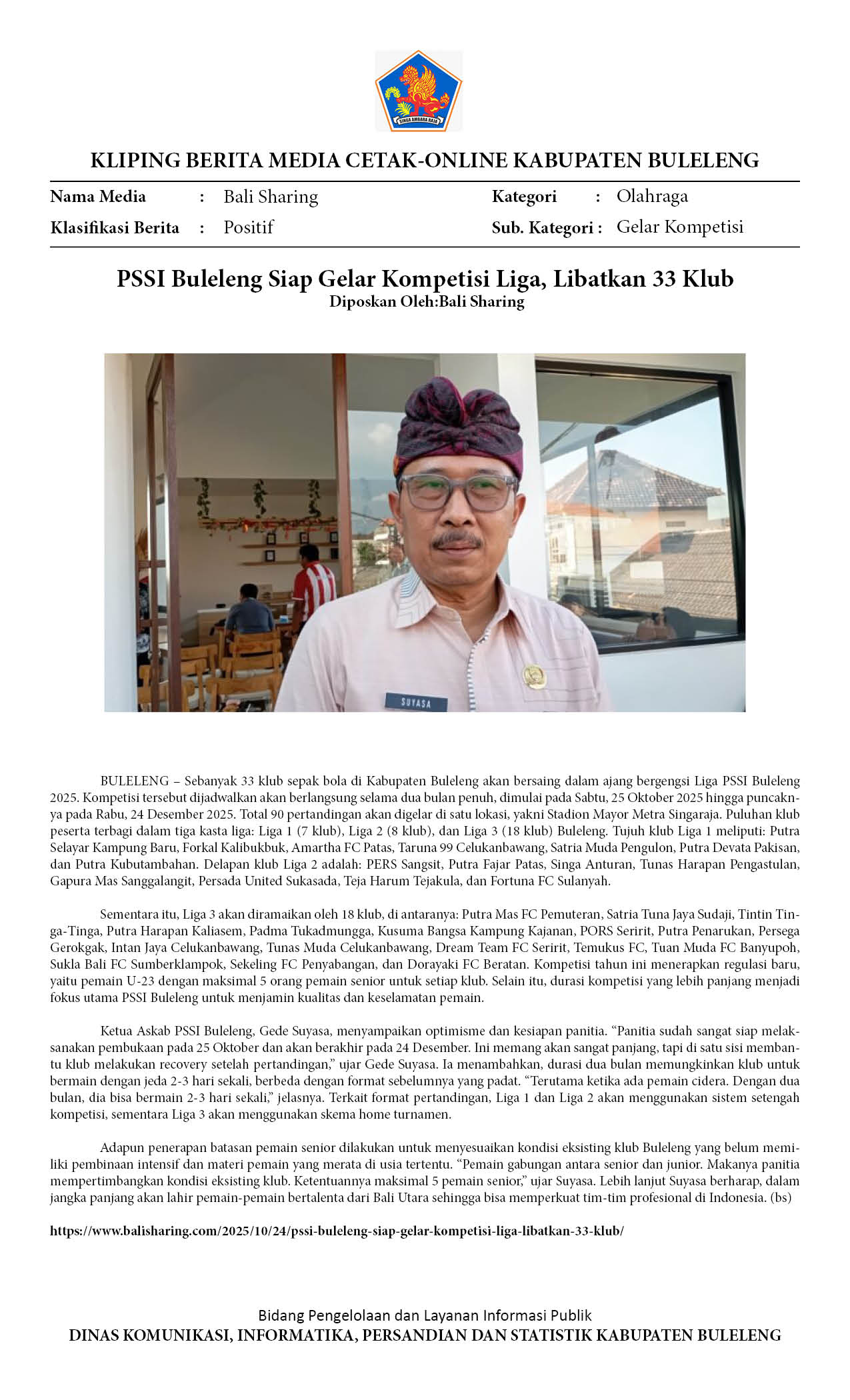 PSSI BULELENG SIAP GELAR KOMPETISI LIGA, LIBATKAN 33 KLUB