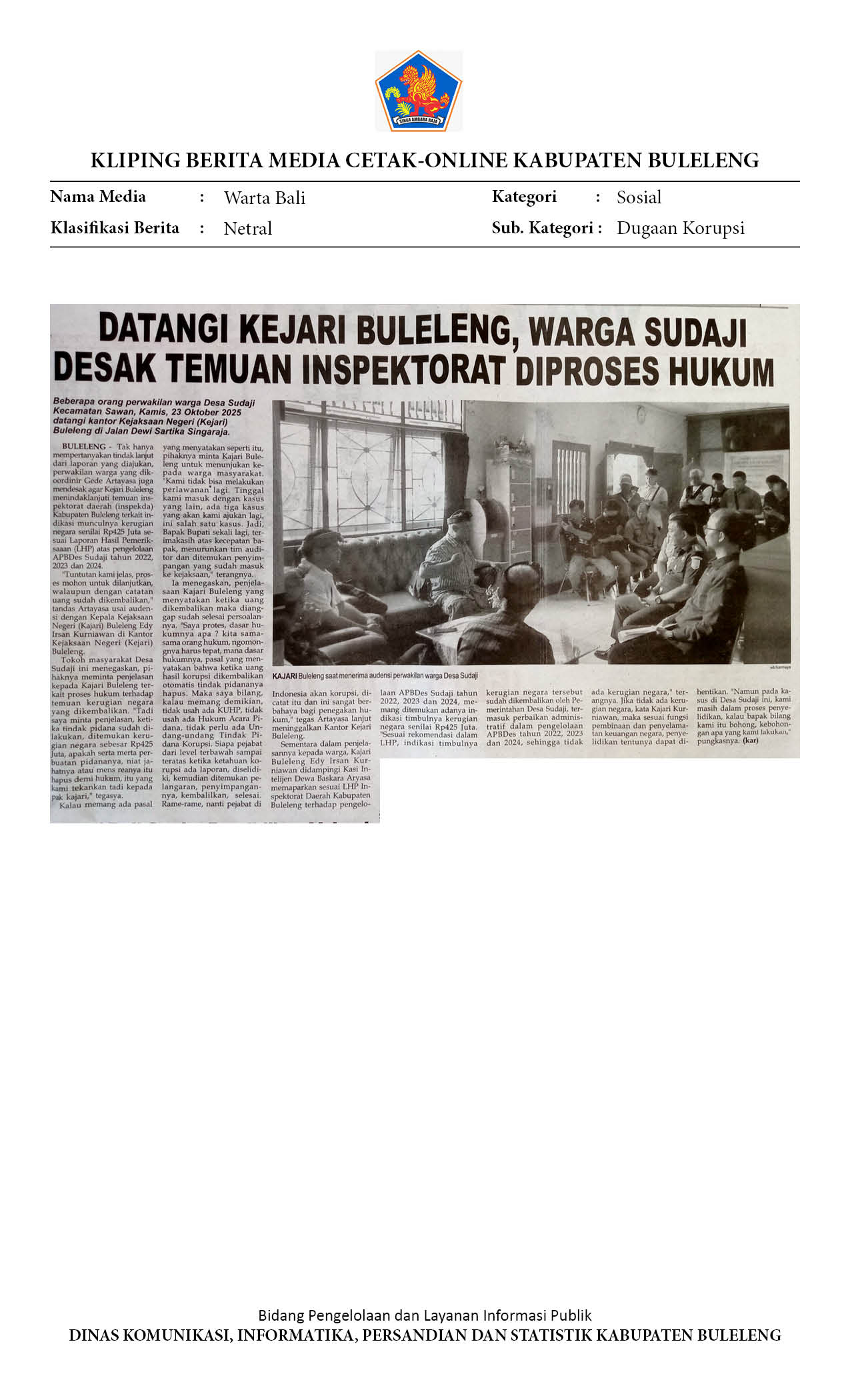 DATANGI KEJARI BULELENG, WARGA SUDAJI DESAK TEMUAN INSPEKTORAT DIPROSES HUKUM