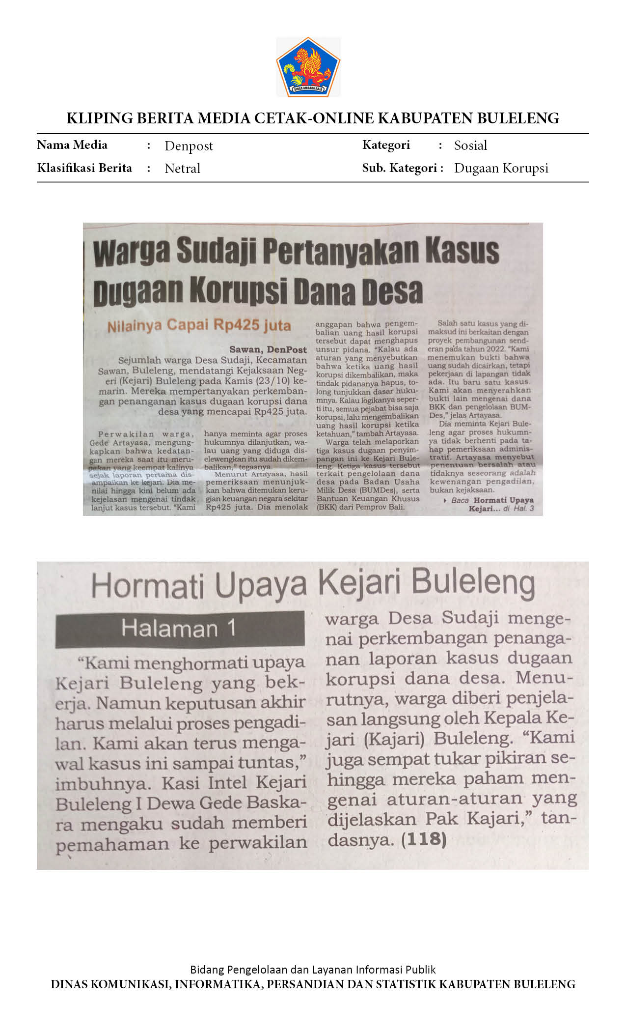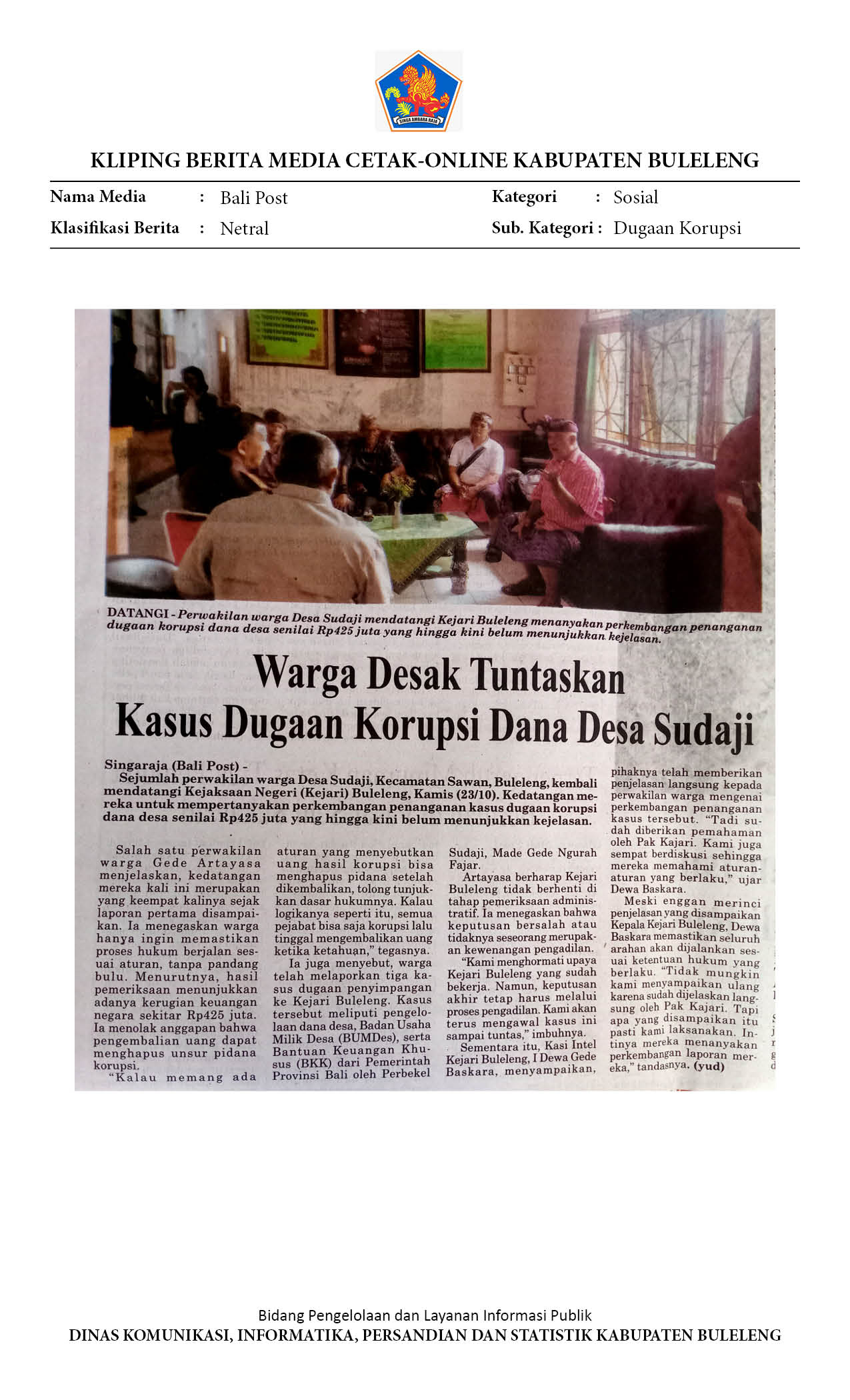 WARGA SUDAJI DESAK KEJARI BULELENG TUNTASKAN KASUS DUGAAN KORUPSI DANA DESA