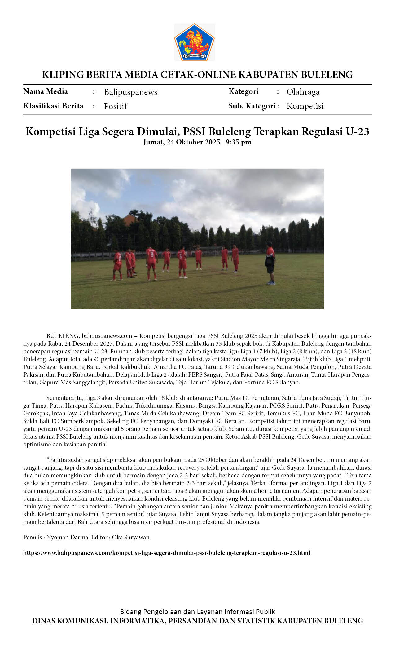 KOMPETISI LIGA SEGERA DIMULAI, PSSI BULELENG TERAPKAN REGULASI U-23