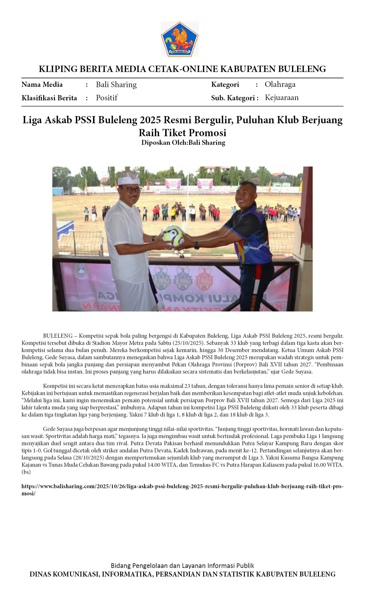 Kliping Kategori Olahraga Edisi 27 Oktober 2025