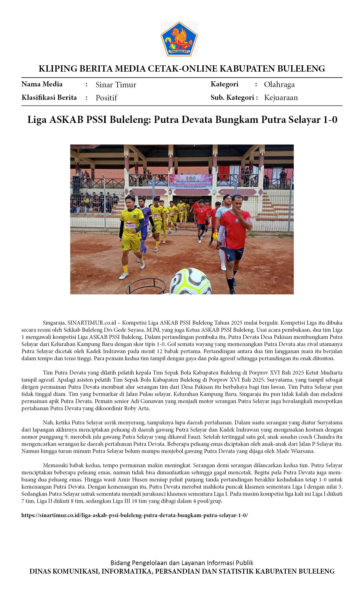 LIGA ASKAB PSSI BULELENG: PUTRA DEVATA BUNGKAM PUTRA SELAYAR 1-0
