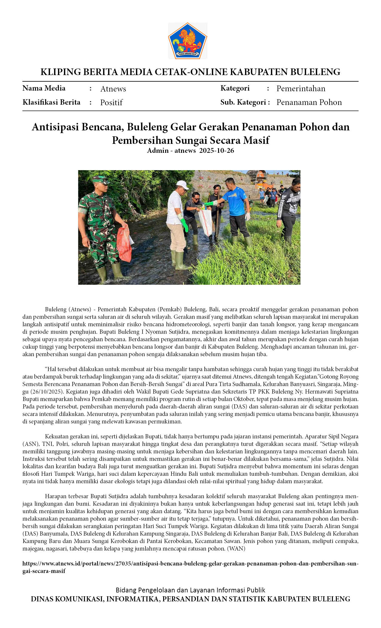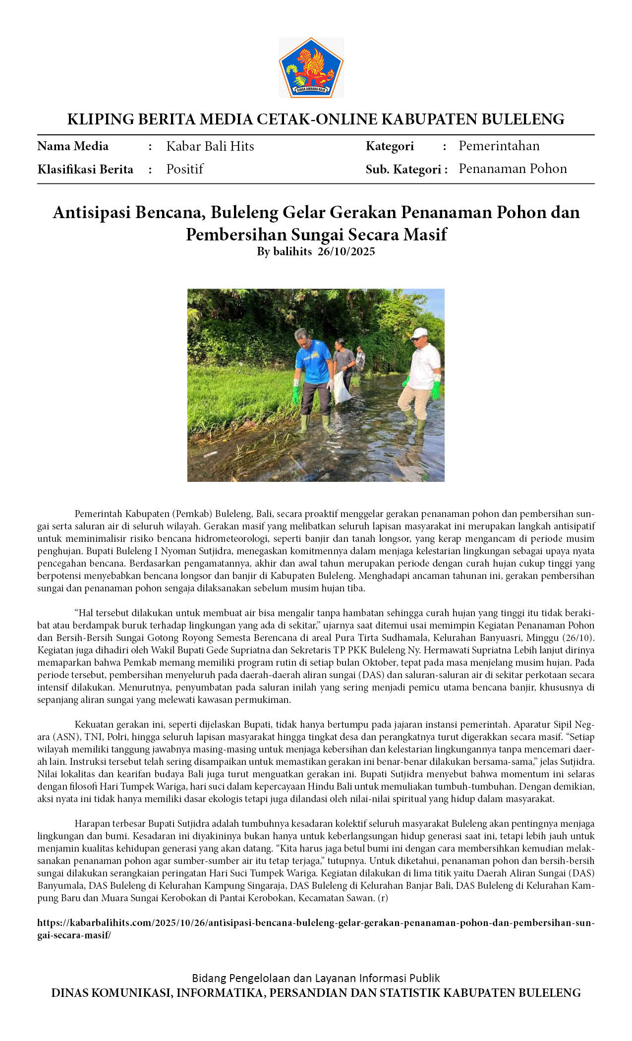 ANTISIPASI BENCANA, BULELENG GELAR GERAKAN PENANAMAN POHON DAN PEMBERSIHAN SUNGAI SECARA MASIF