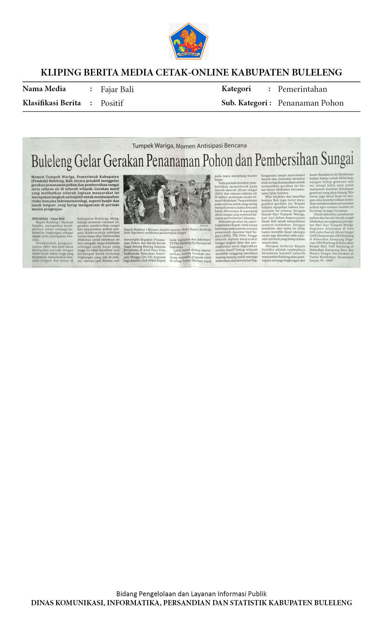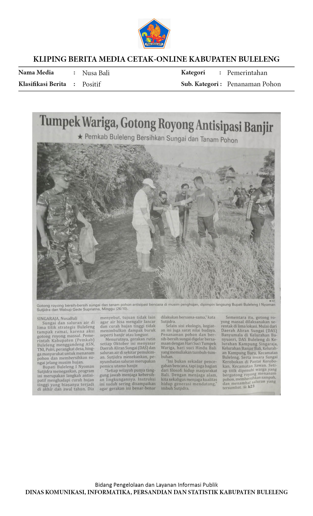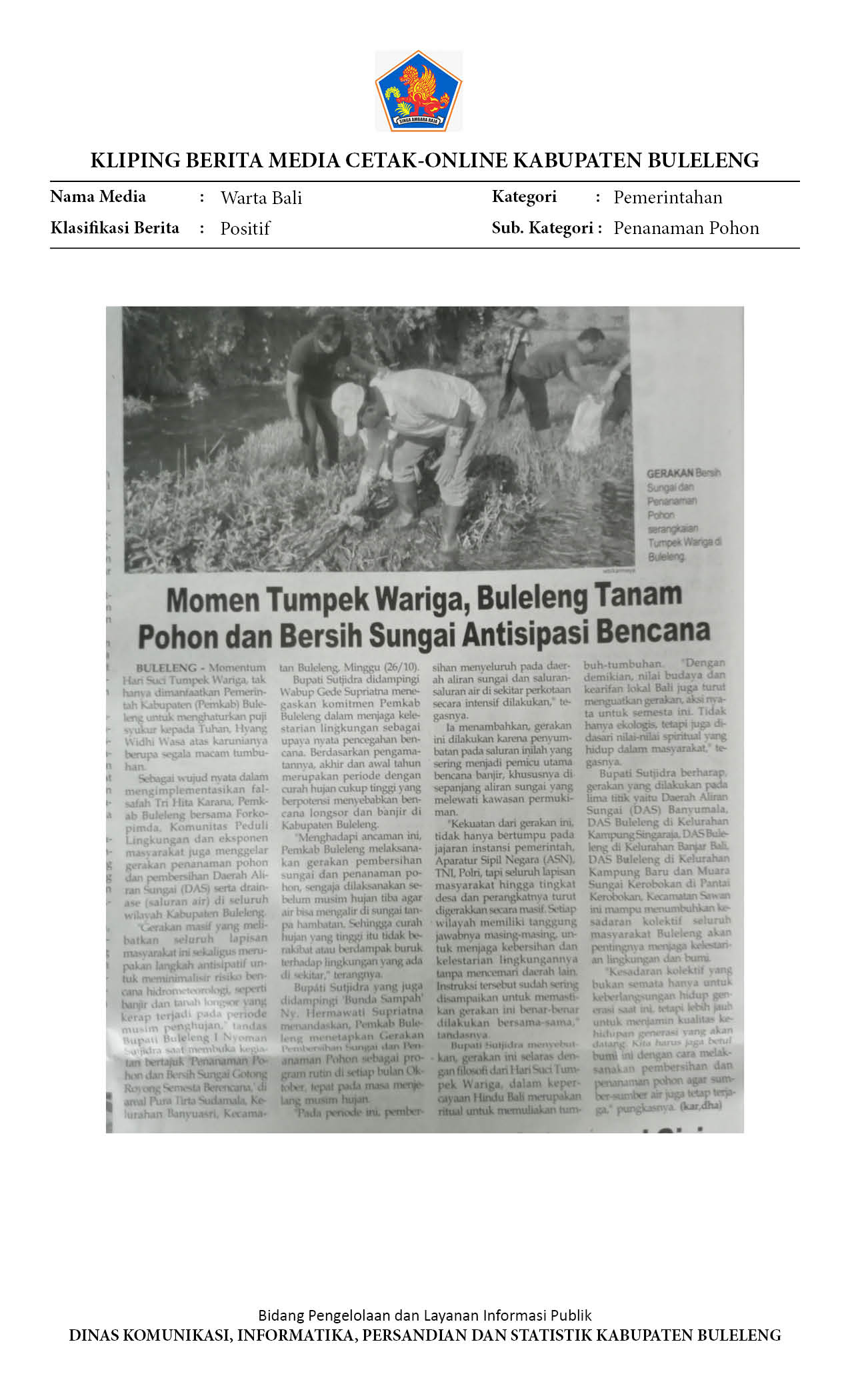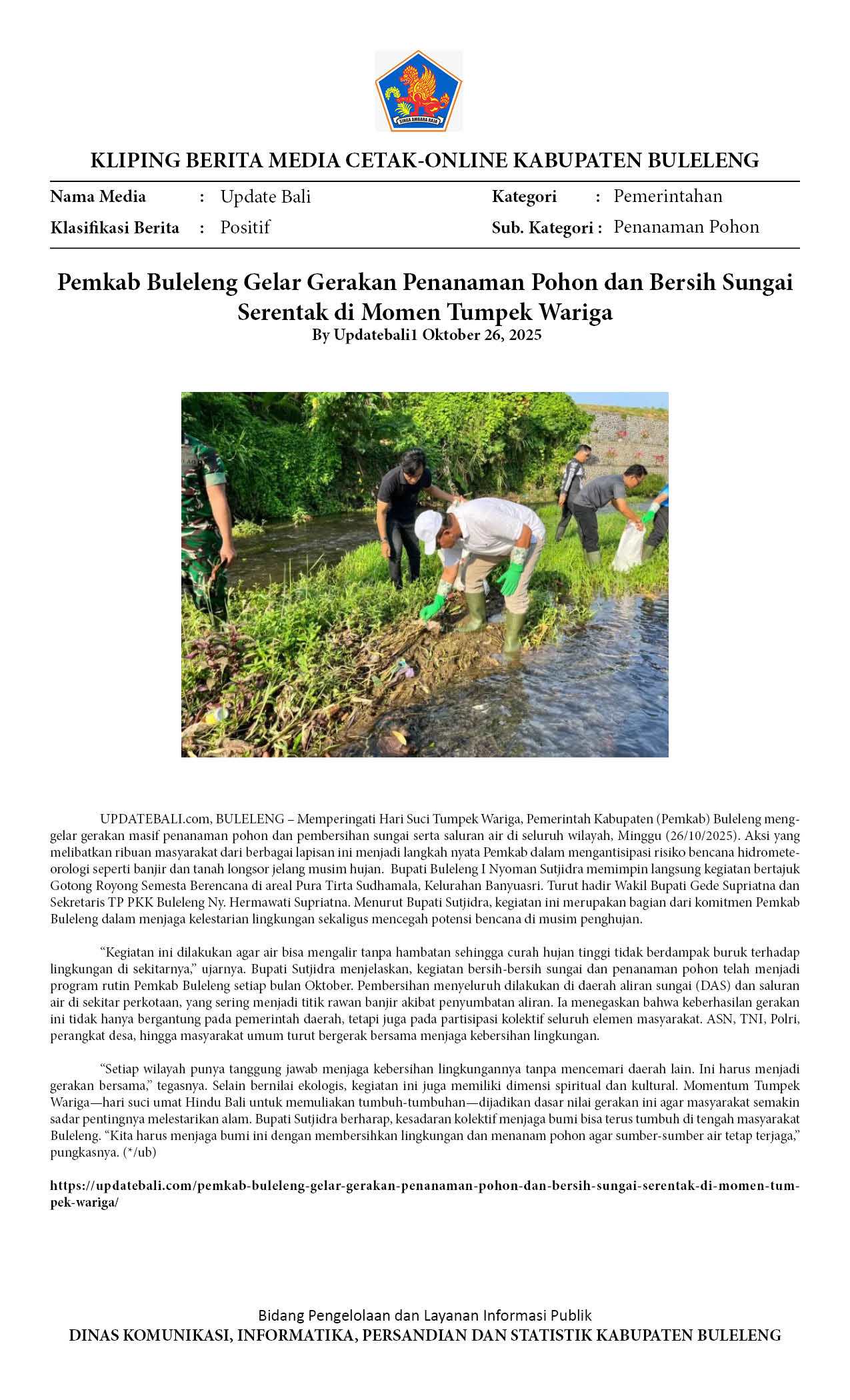 TUMPEK WARIGA, MOMEN ANTISIPASI BENCANA. BULELENG GELAR GERAKAN PENANAMAN POHON DAN PEMBERSIHAN SUNGAI