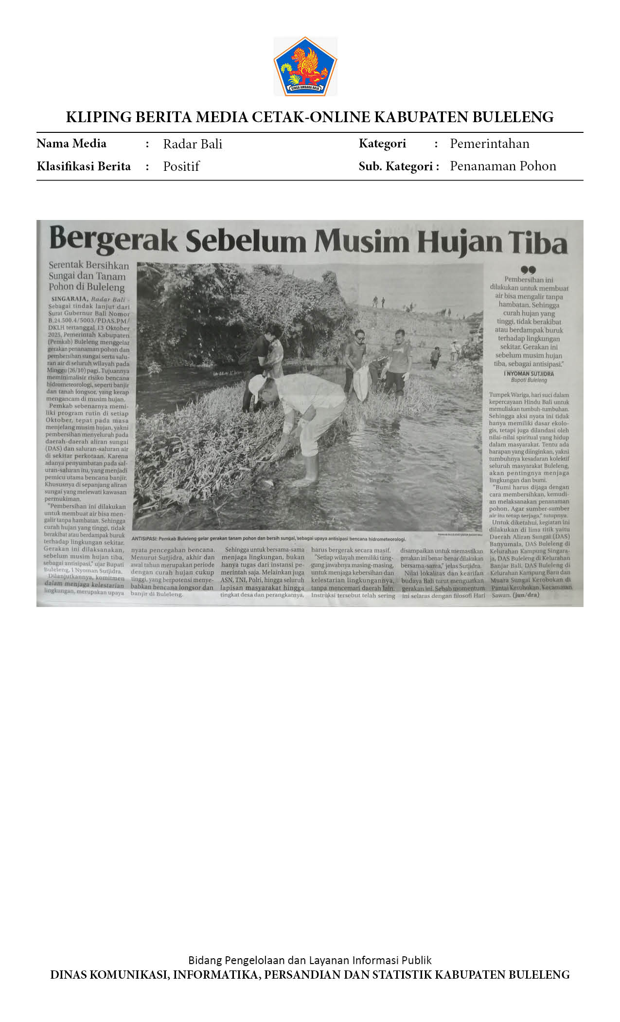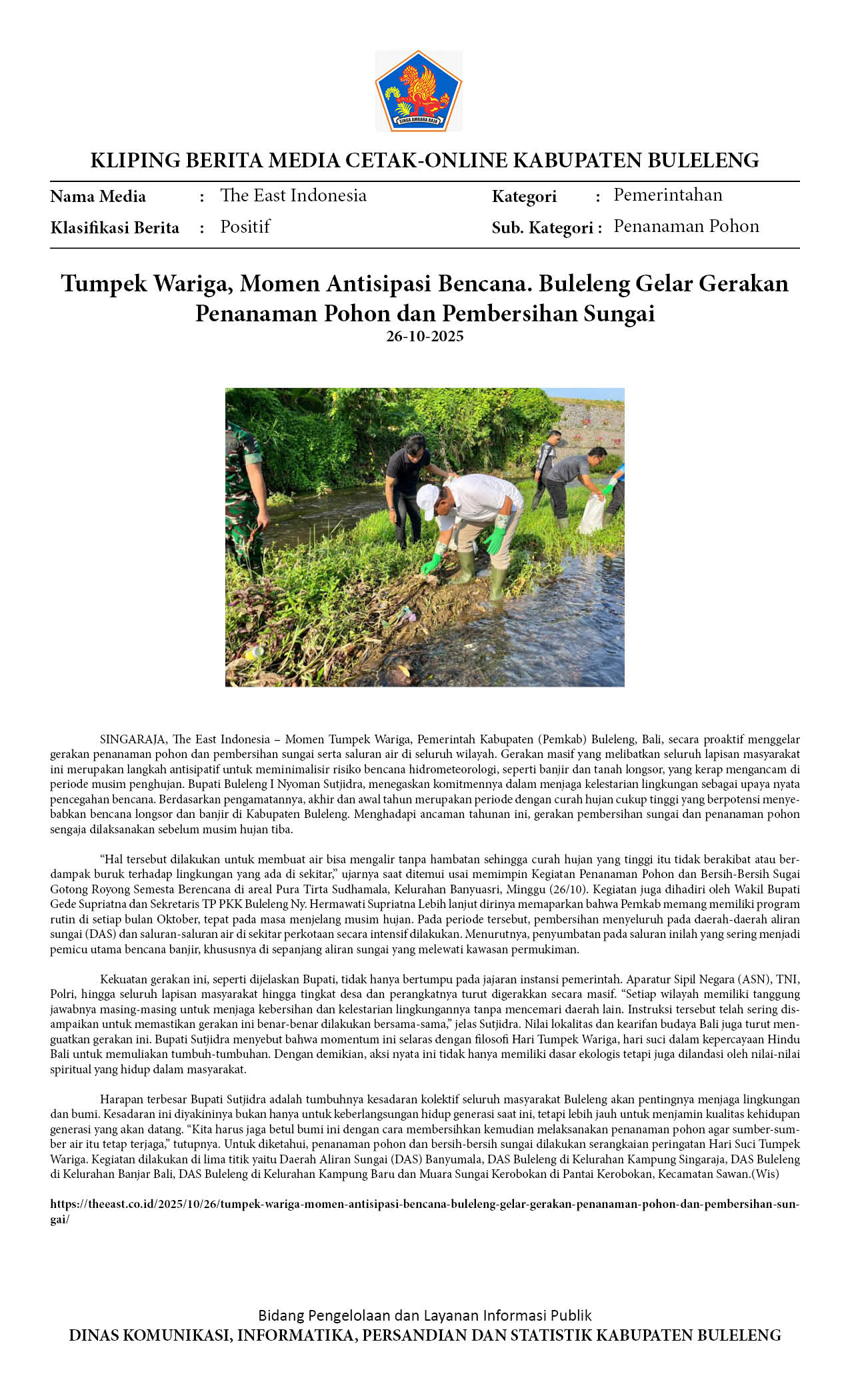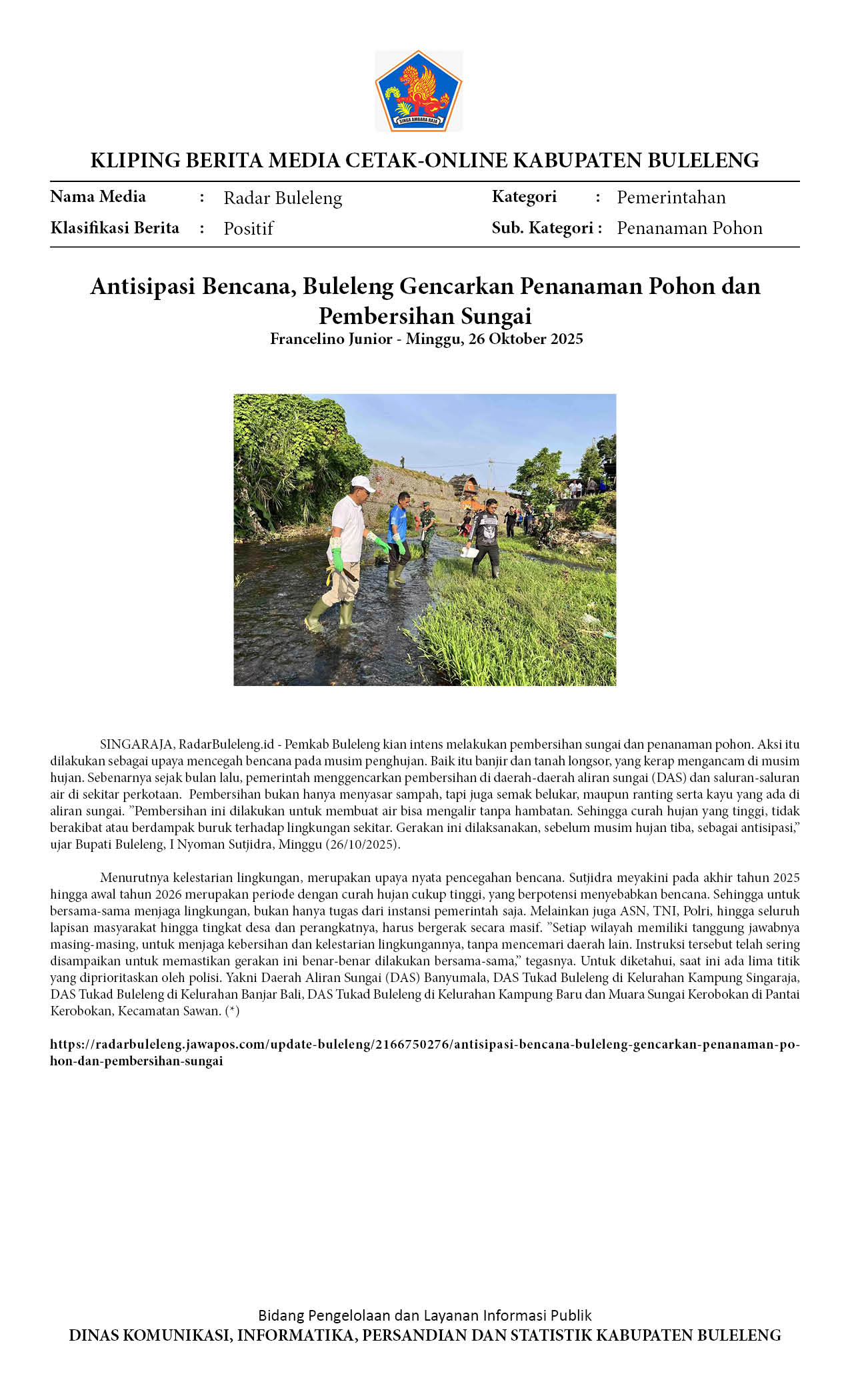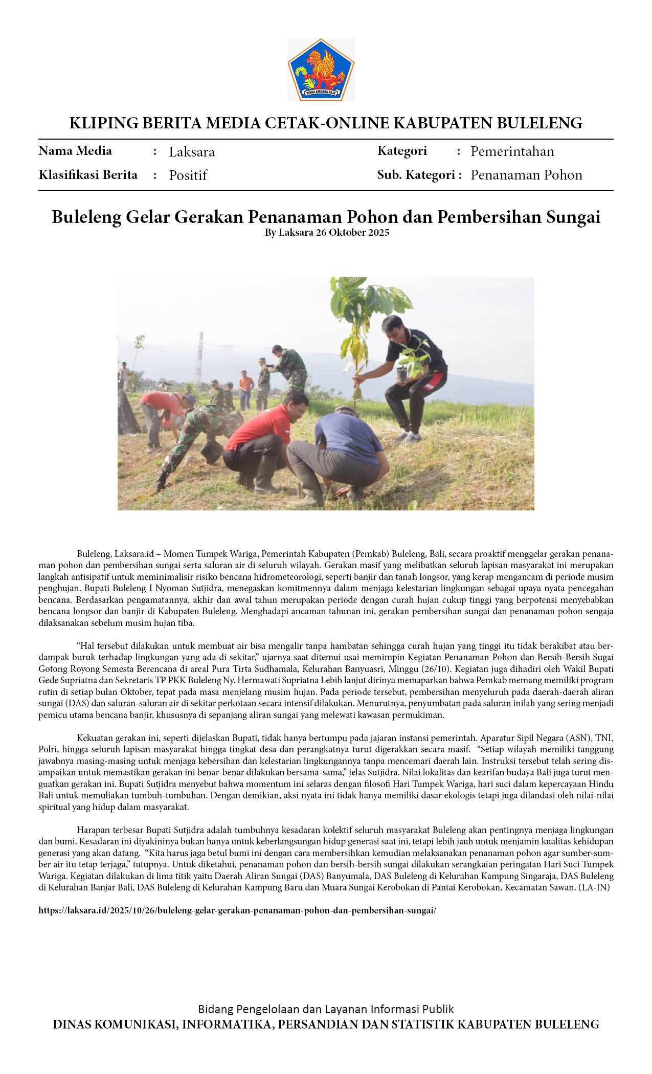 TUMPEK WARIGA, MOMEN ANTISIPASI BENCANA. BULELENG GELAR GERAKAN PENANAMAN POHON DAN PEMBERSIHAN SUNGAI