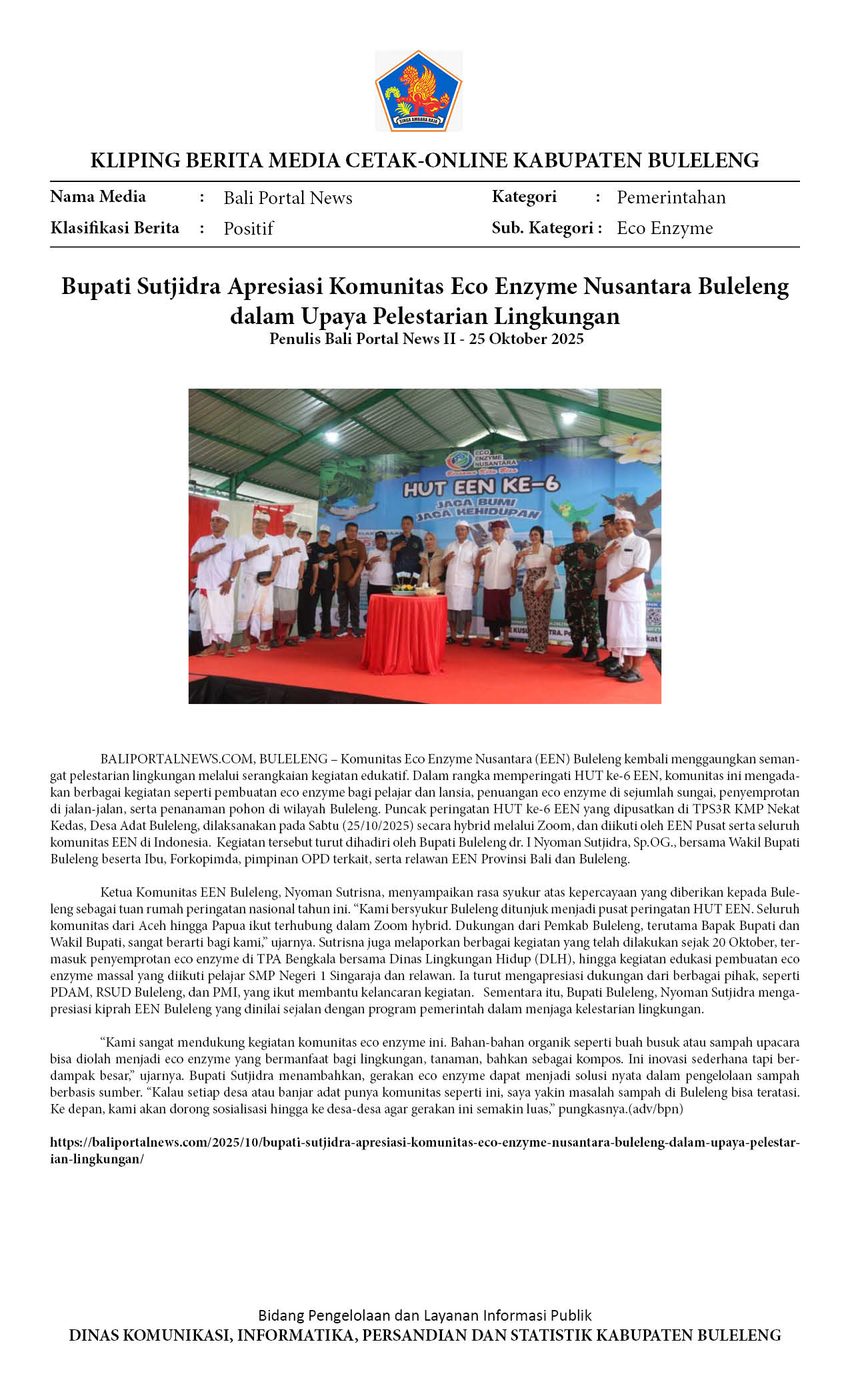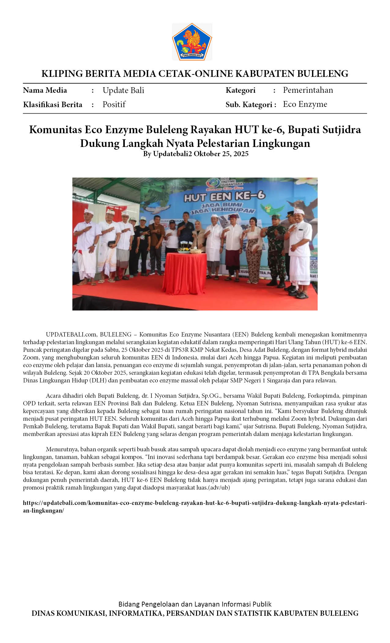 KOMUNITAS ECO ENZYME BULELENG RAYAKAN HUT KE-6, BUPATI SUTJIDRA DUKUNG LANGKAH NYATA PELESTARIAN LINGKUNGAN
