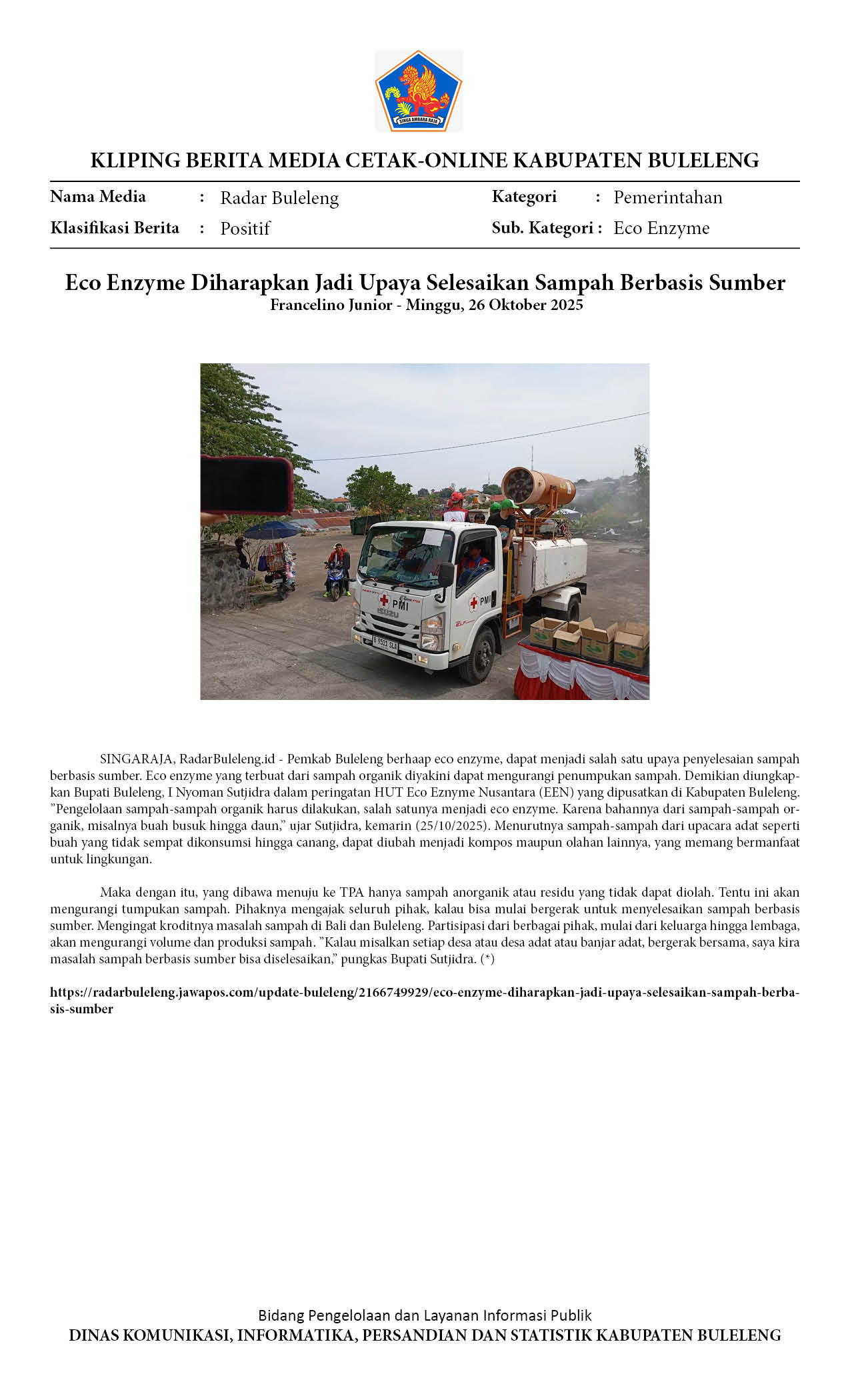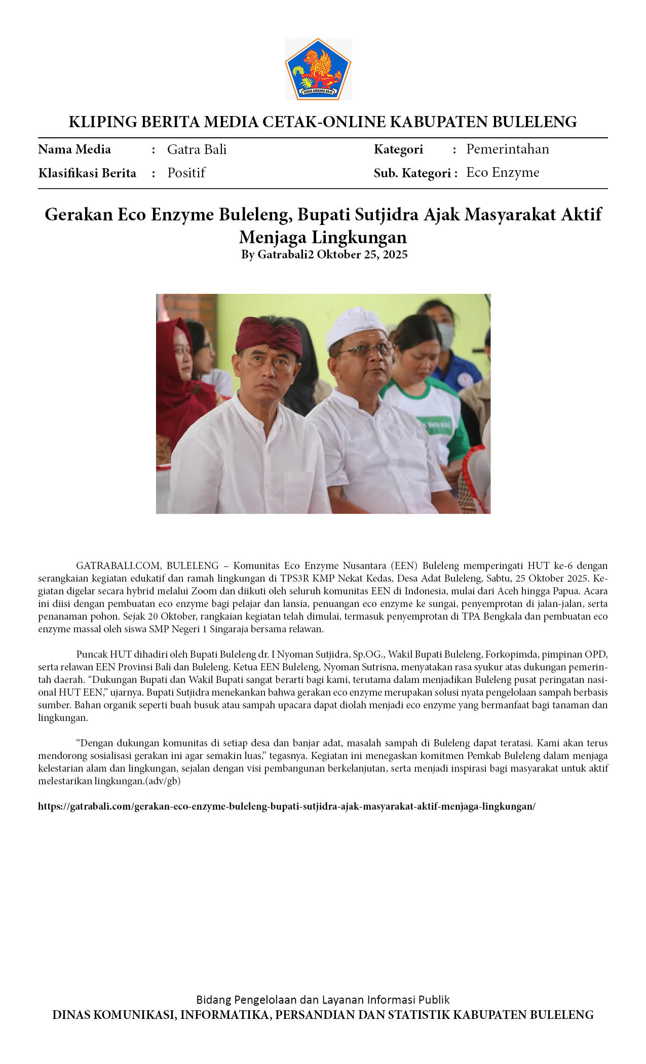 GERAKAN ECO ENZYME BULELENG, BUPATI SUTJIDRA AJAK MASYARAKAT AKTIF MENJAGA LINGKUNGAN