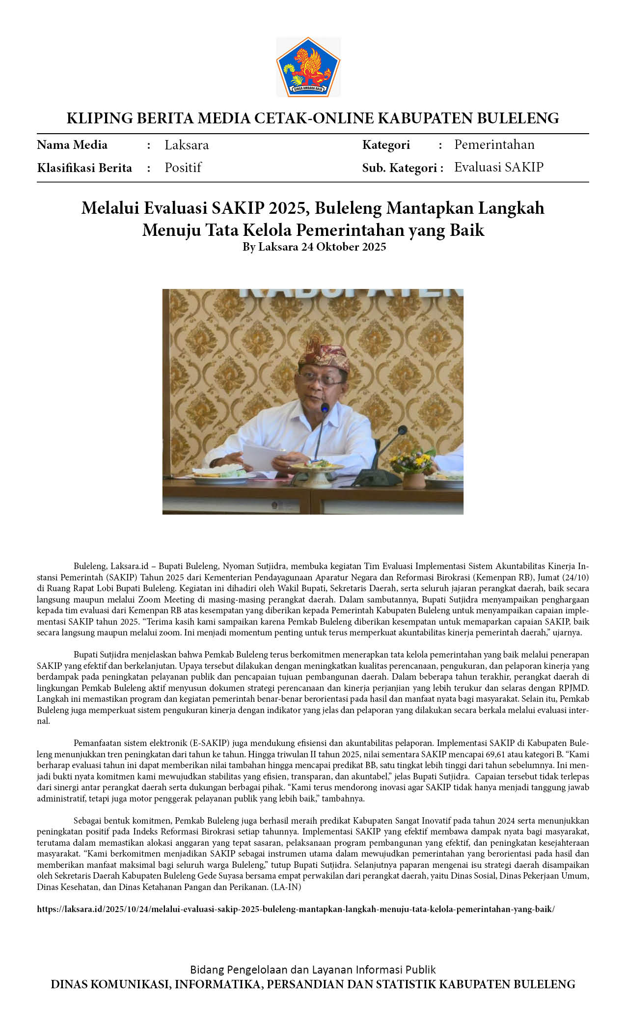 MELALUI EVALUASI SAKIP 2025, BULELENG MANTAPKAN LANGKAH MENUJU TATA KELOLA PEMERINTAHAN YANG BAIK