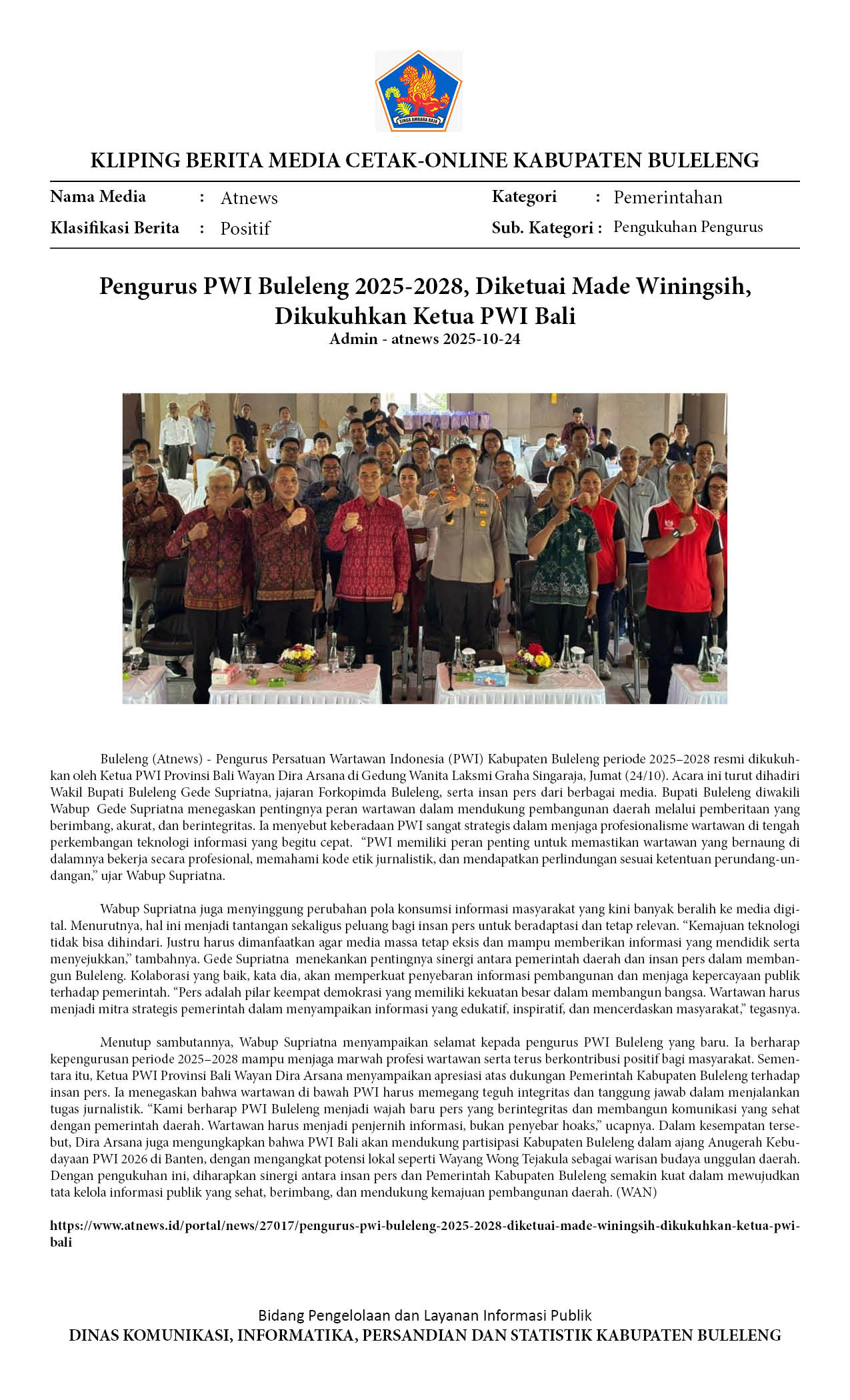 PENGURUS PWI BULELENG 2025-2028, DIKETUAI MADE WININGSIH, DIKUKUHKAN KETUA PWI BALI