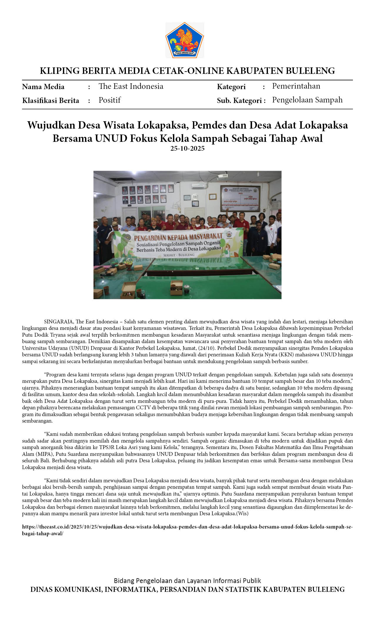 WUJUDKAN DESA WISATA LOKAPAKSA, PEMDES DAN DESA ADAT LOKAPAKSA BERSAMA UNUD FOKUS KELOLA SAMPAH SEBAGAI TAHAP AWAL