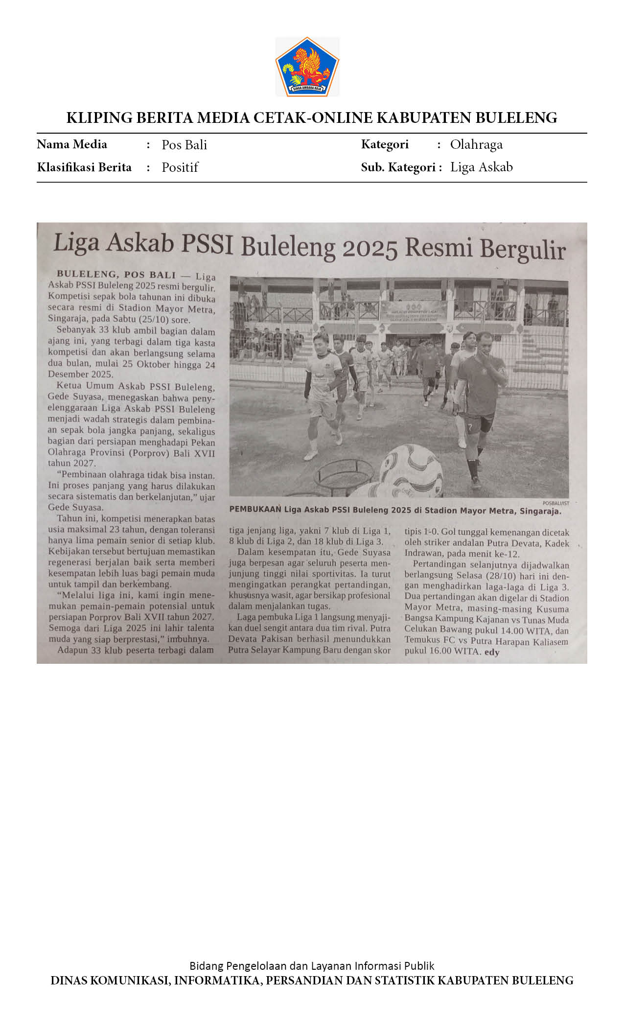 LIGA ASKAB PSSI BULELENG 2025 RESMI BERGULIR