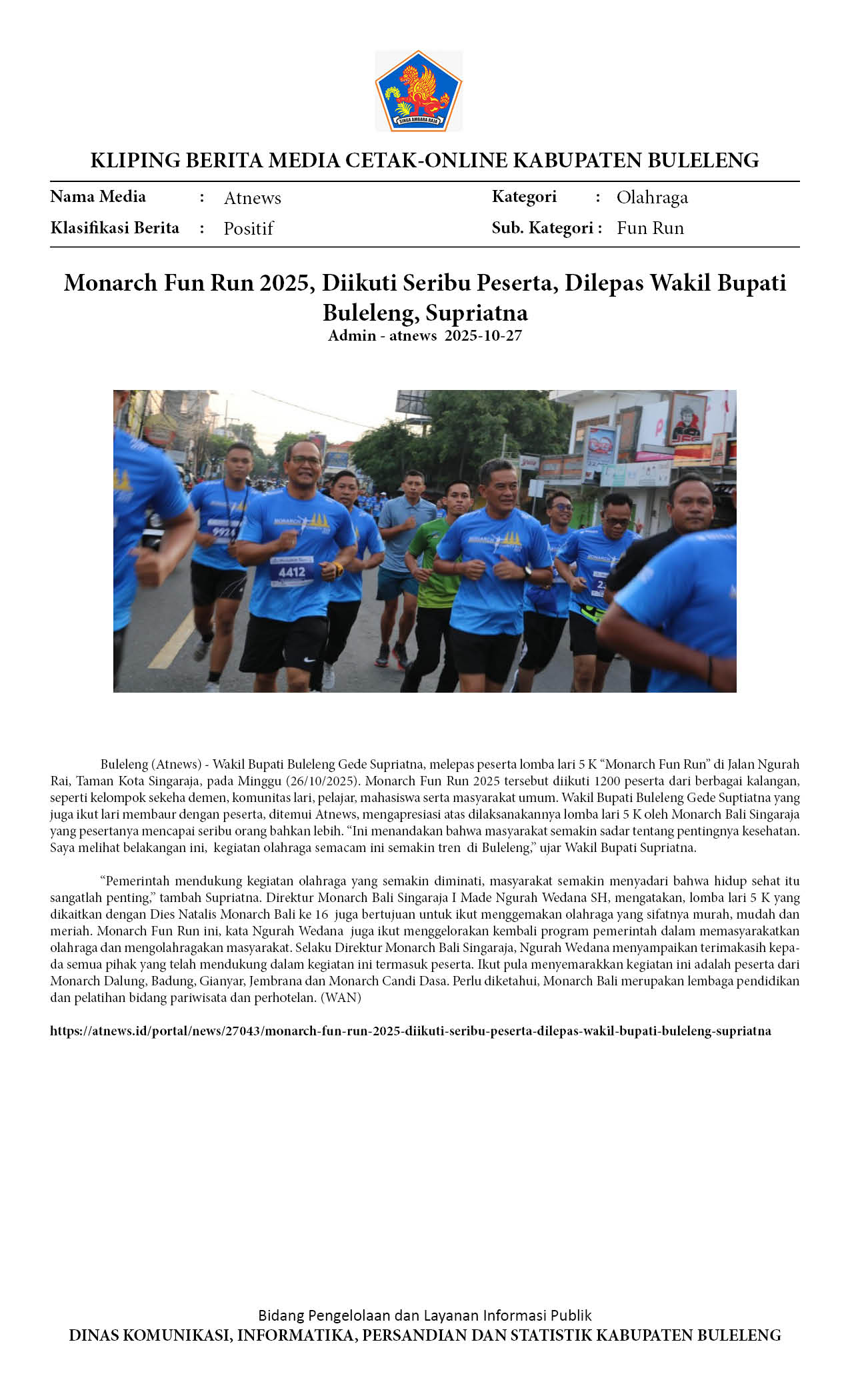 MONARCH FUN RUN 2025, DIIKUTI SERIBU PESERTA, DILEPAS WAKIL BUPATI BULELENG, SUPRIATNA