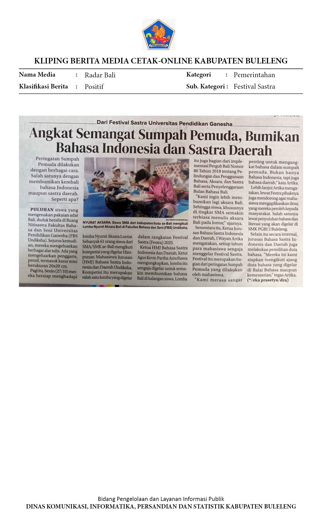 ANGKAT SEMANGAT SUMPAH PEMUDA, BUMIKAN BAHASA INDONESIA DAN SASTRA DAERAH