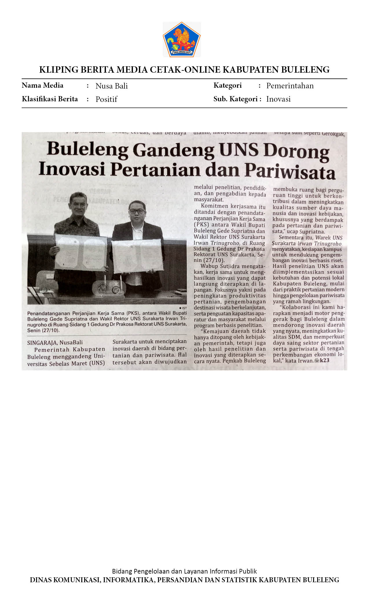 BULELENG GANDENG UNS DORONG INOVASI PERTANIAN DAN PARIWISATA