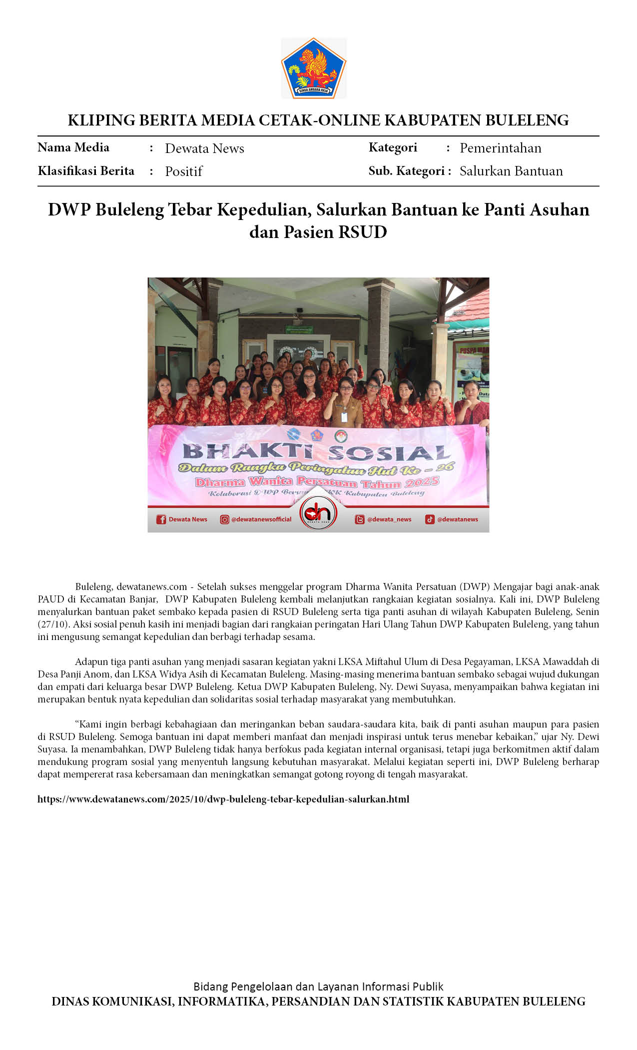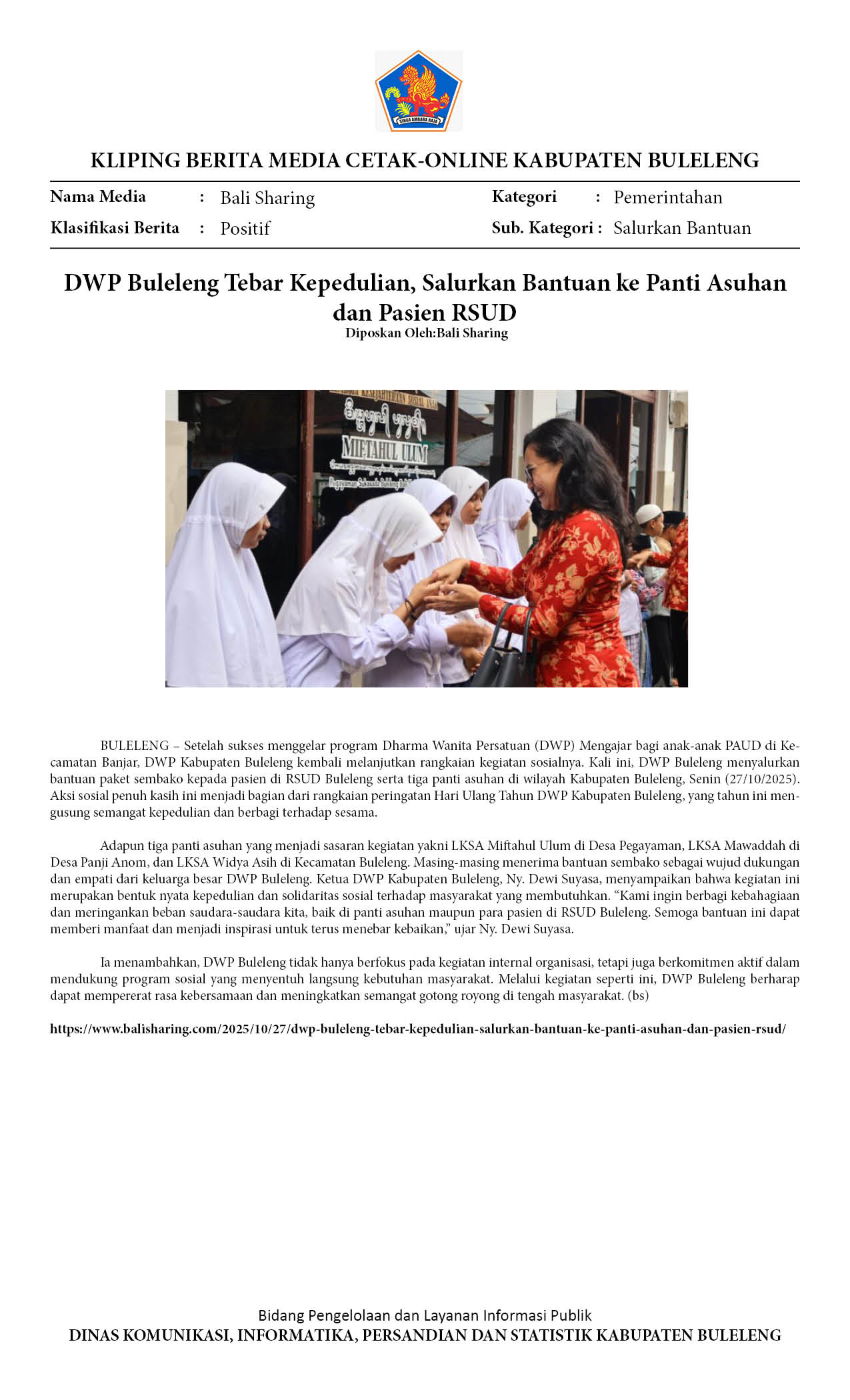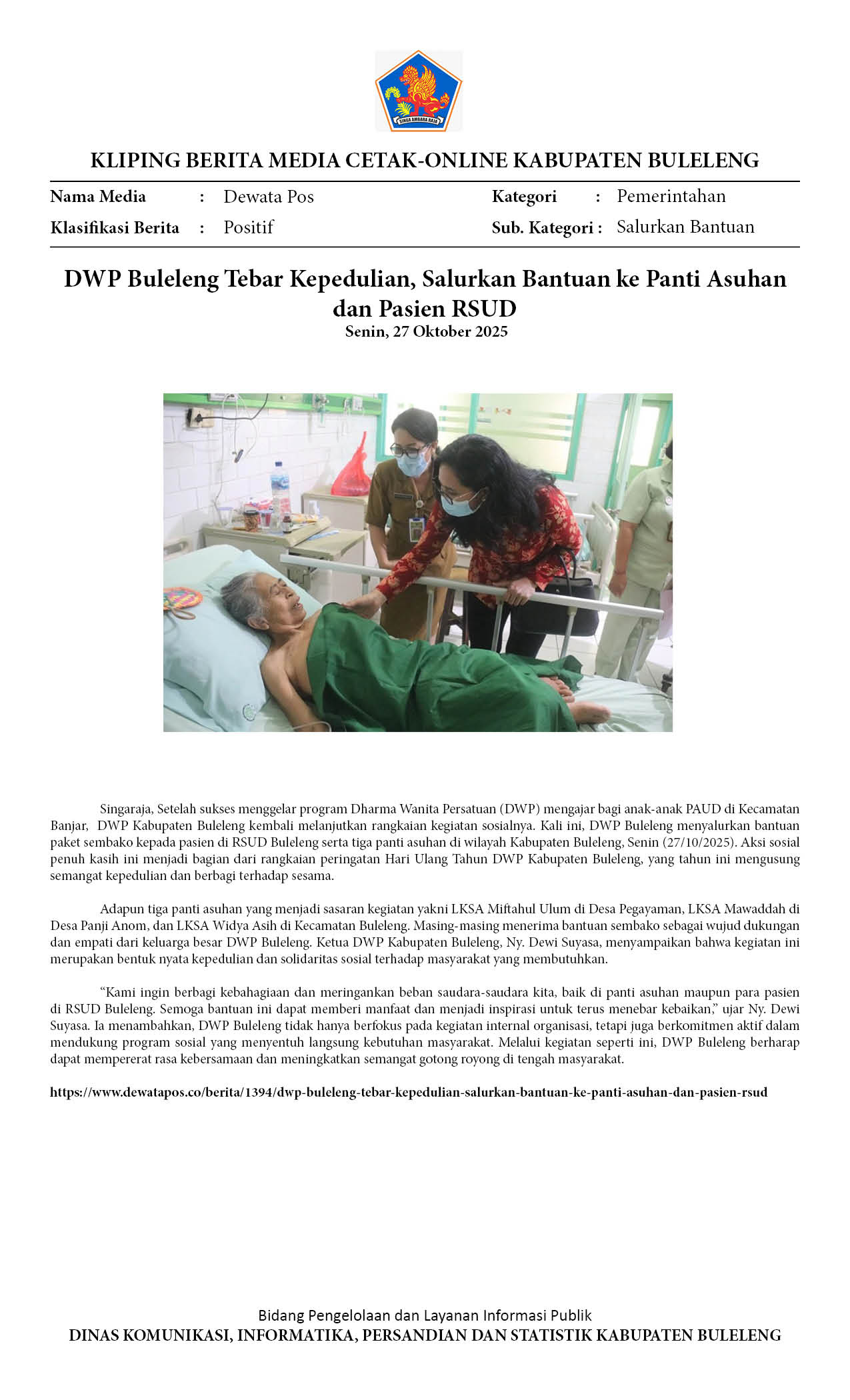 DWP BULELENG TEBAR KEPEDULIAN, SALURKAN BANTUAN KE PANTI ASUHAN DAN PASIEN RSUD