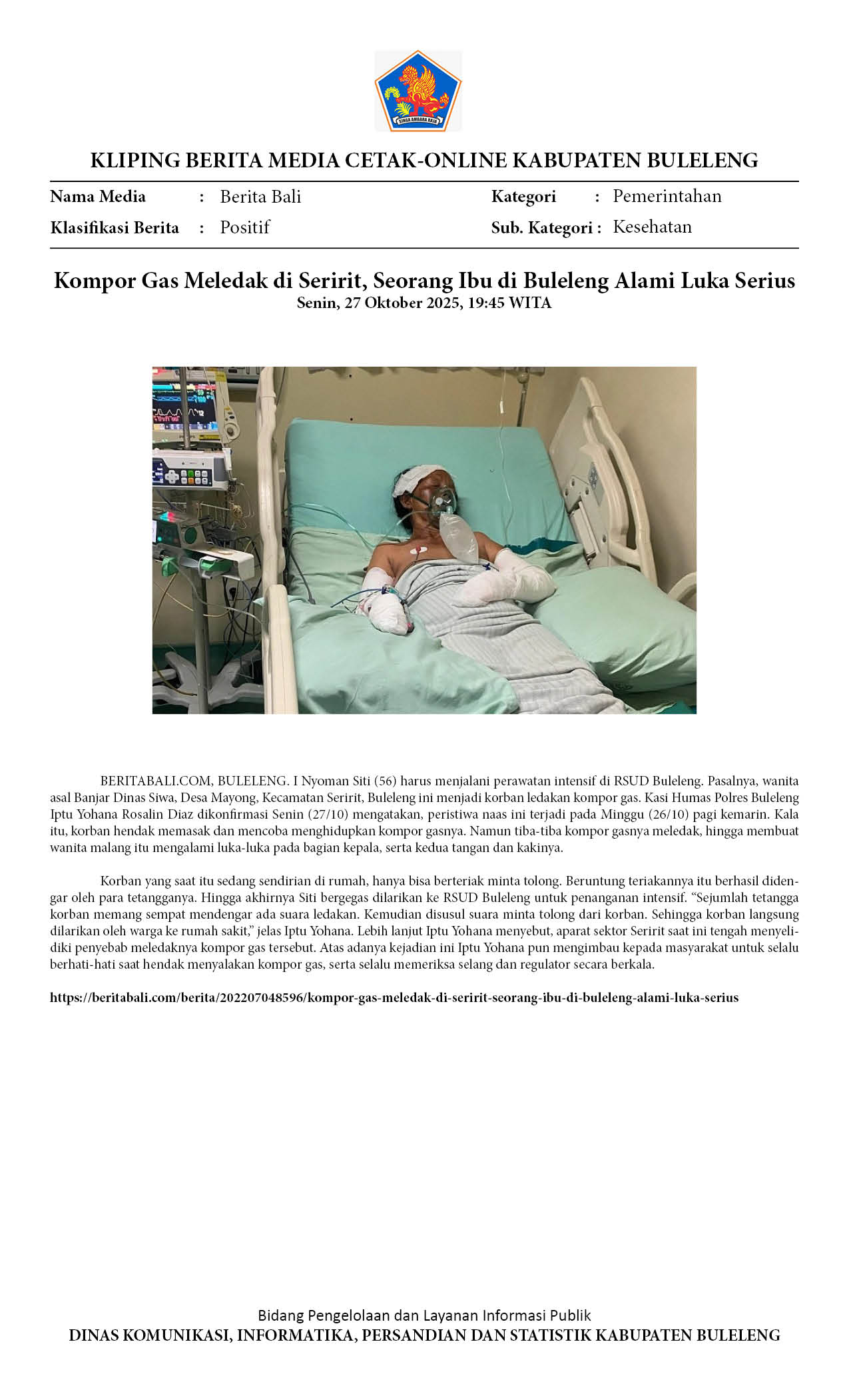 KOMPOR GAS MELEDAK DI SERIRIT, SEORANG IBU DI BULELENG ALAMI LUKA SERIUS