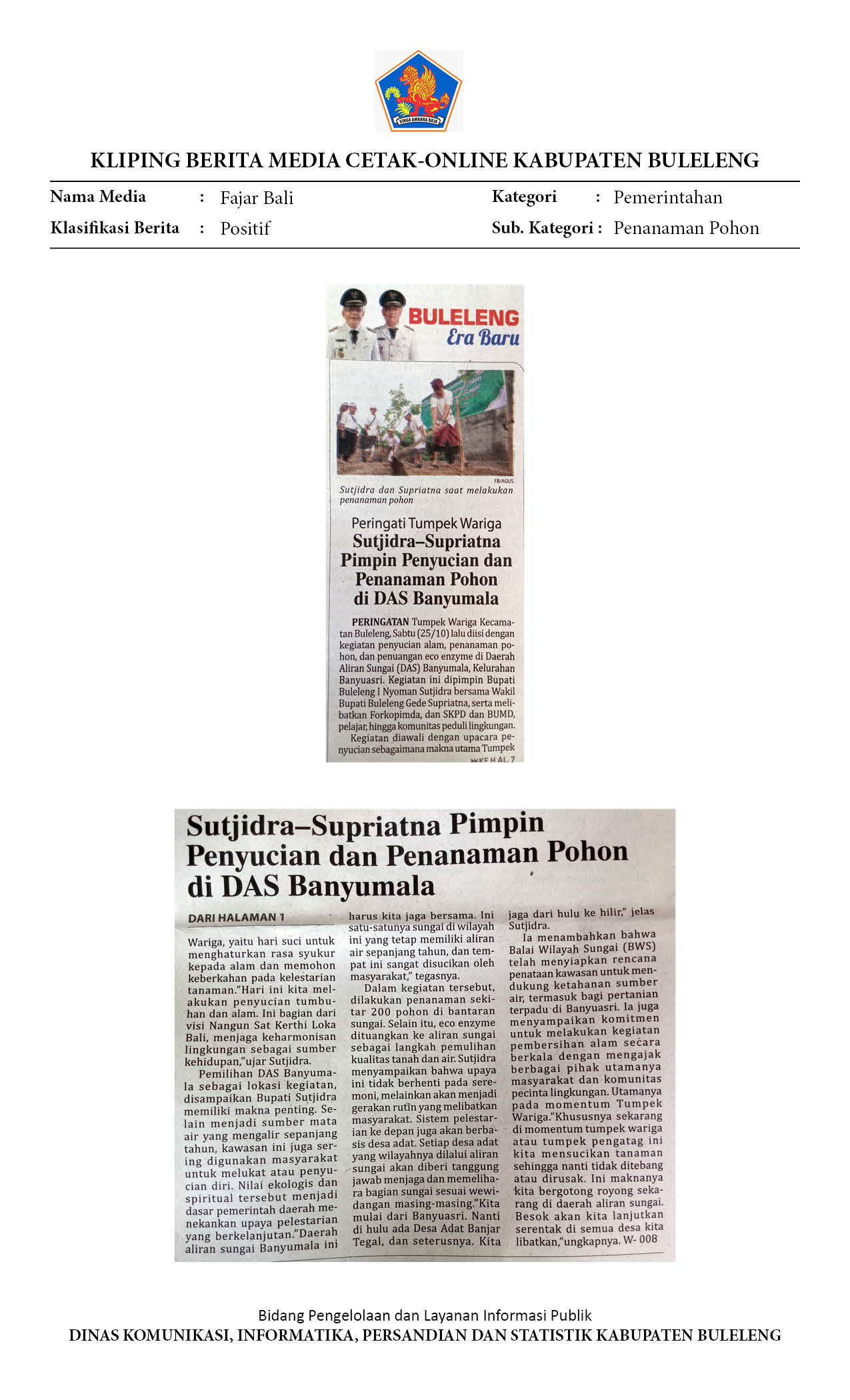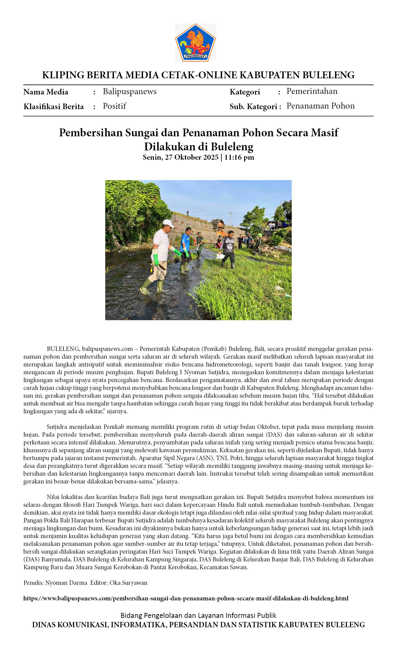 PEMBERSIHAN SUNGAI DAN PENANAMAN POHON SECARA MASIF DILAKUKAN DI BULELENG